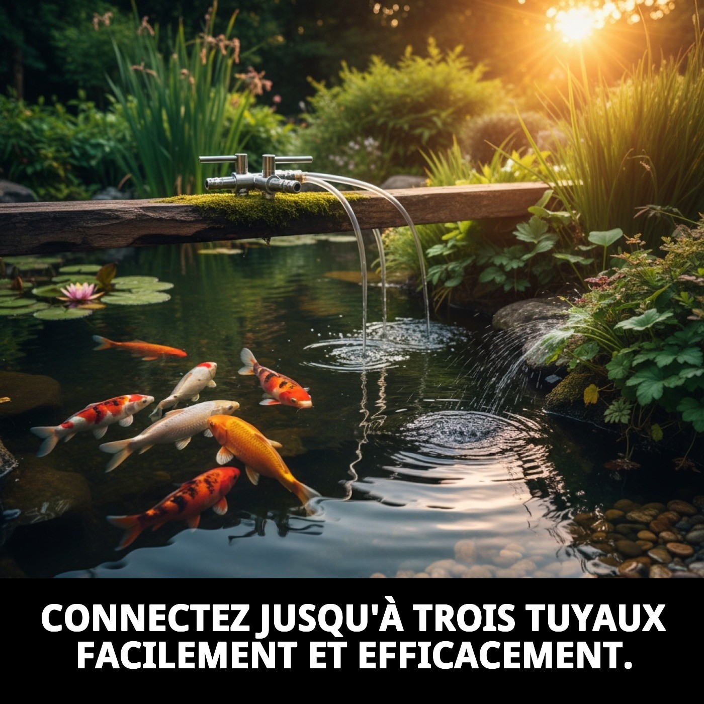 - Connecte jusqu'à trois tuyaux à une seule source d'eau.