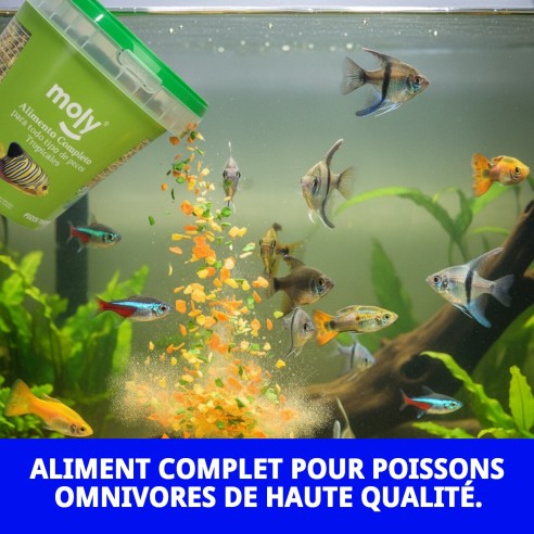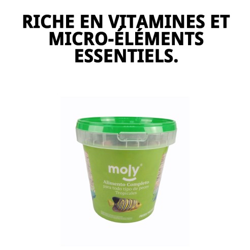 Moly Goldfish Color est l'aliment idéal pour vos poissons, offrant un régime équilibré et complet qui rehausse leur couleur. Avec des ingrédients de haute qualité, tels que des protéines et des vitamines, cet aliment favorise un système immunitaire fort, garantissant la santé et la vitalité de vos goldfish et jeunes kois. Administrez 2-3 fois par jour...