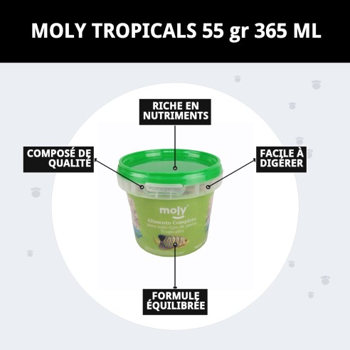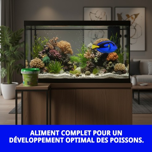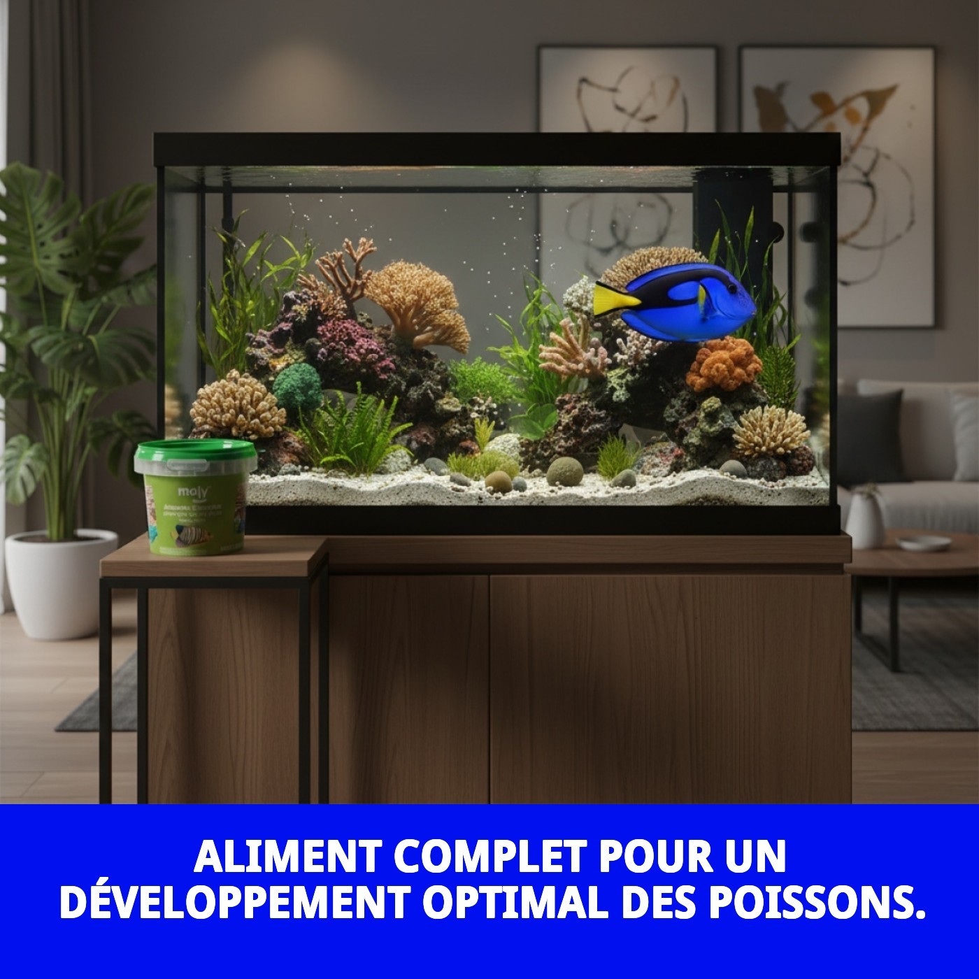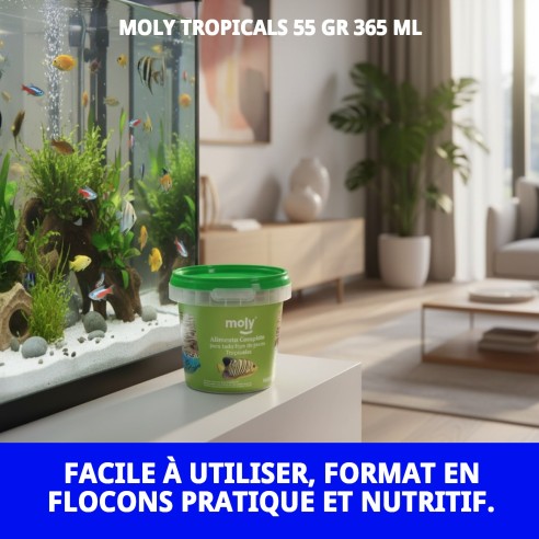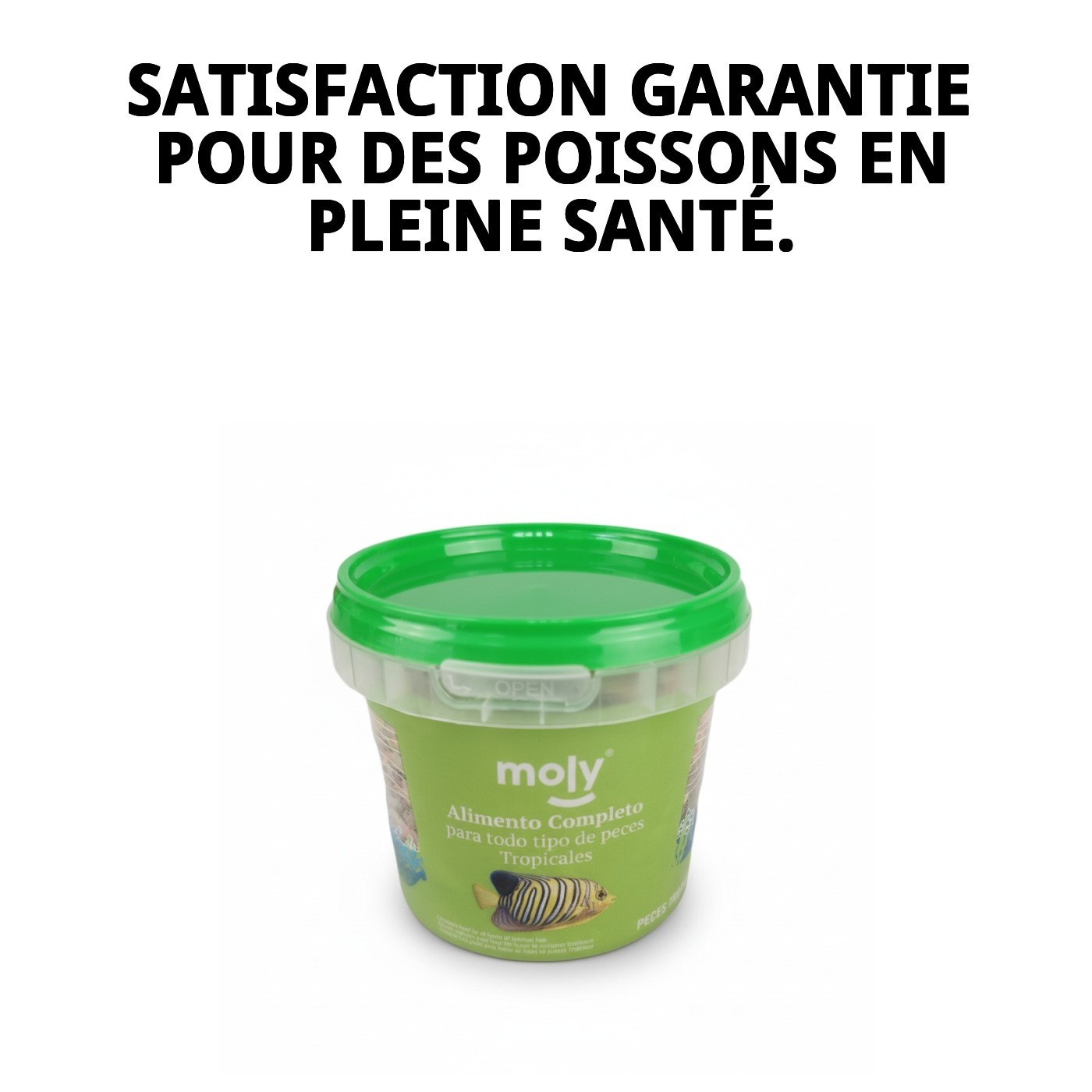 Moly Goldfish Color 55 gr est l'aliment idéal pour rehausser la couleur de vos poissons d'eau froide, tels que les Goldfish et les Kois jeunes. Ce produit complet et équilibré, riche en protéines et contenant du BETA-1,3/1,6 GLUCAN, renforce le système immunitaire de vos animaux de compagnie, assurant leur vitalité et leur bien-être. Offrez-leur le...