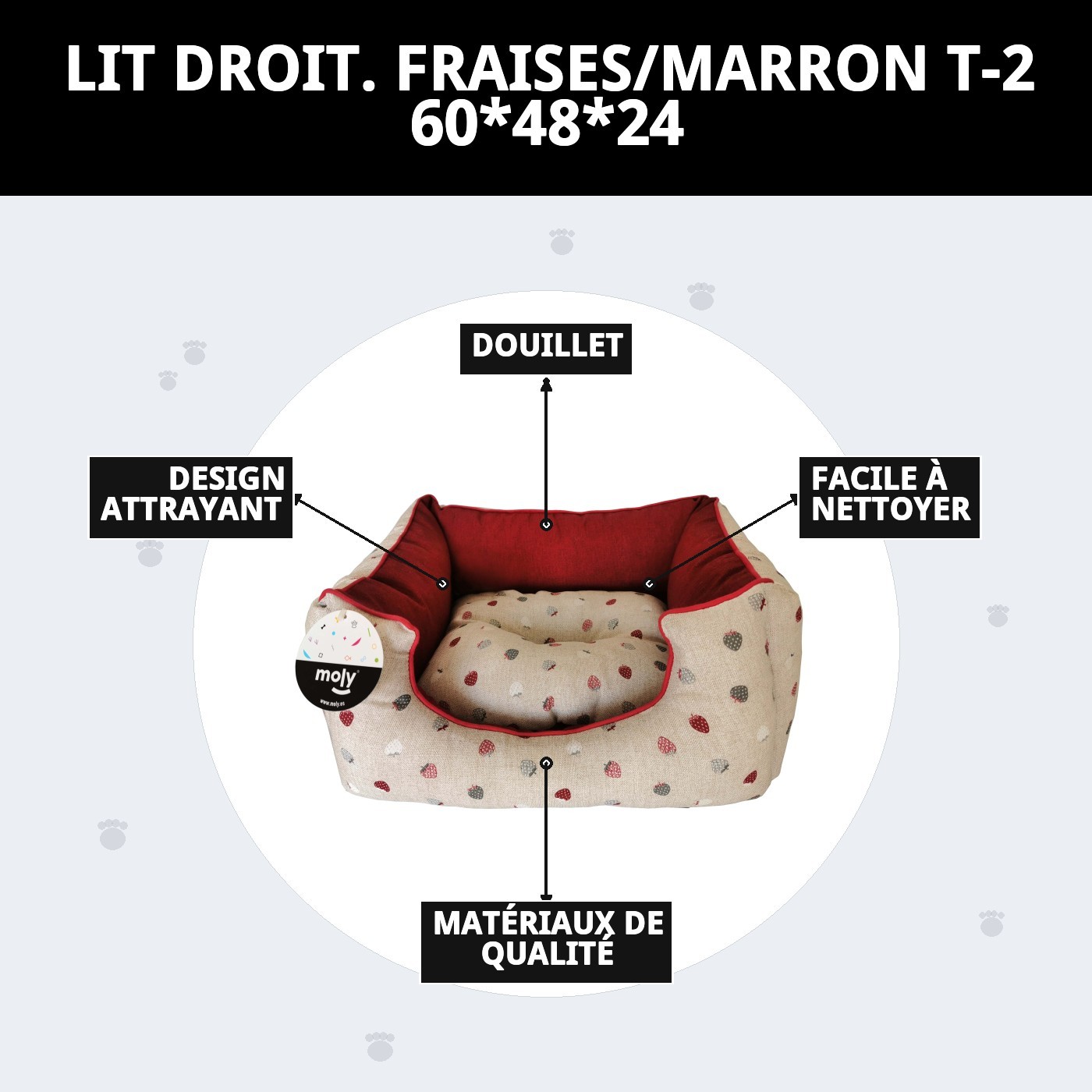 Vous cherchez l'endroit parfait pour que votre animal de compagnie se repose ? Le lit rect. fraises/grenat T-2 60*48*24 est la solution idéale pour offrir à votre animal un espace confortable et accueillant. Il n'y a rien de mieux que de voir votre ami à quatre pattes se blottir dans un lit doux et chaud, n'est-ce pas ?