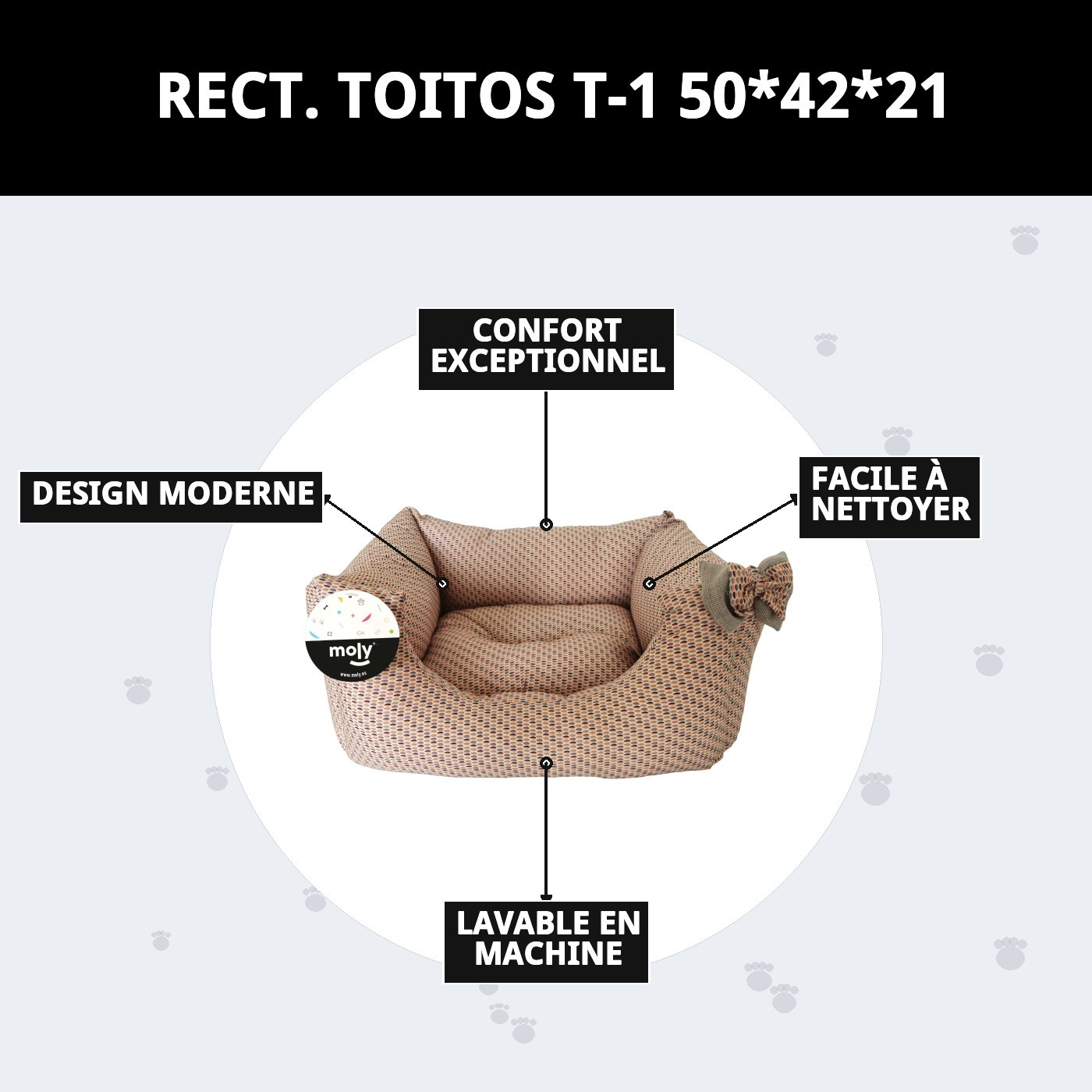 Nous savons tous que les animaux recherchent leur propre espace pour se sentir en sécurité. Le lit rect. topitos T-1 leur offre ce refuge où ils peuvent se retirer pour se reposer sans interruptions. De plus, si vous avez des enfants ou des visiteurs à la maison, votre animal pourra compter sur un endroit tranquille pour se détendre.
