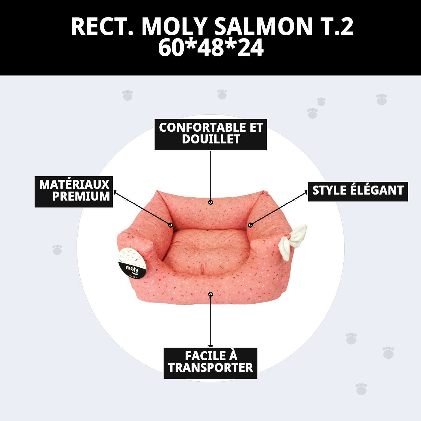 Si vous voulez que votre ami à fourrure profite d'un endroit confortable et stylé pour se reposer, n'hésitez pas à choisir le lit rect. Moly saumon T.2 60*48*24. Avec sa fonctionnalité, sa qualité et son design attrayant, ce sera l'une des meilleures décisions que vous prendrez pour son bien-être !