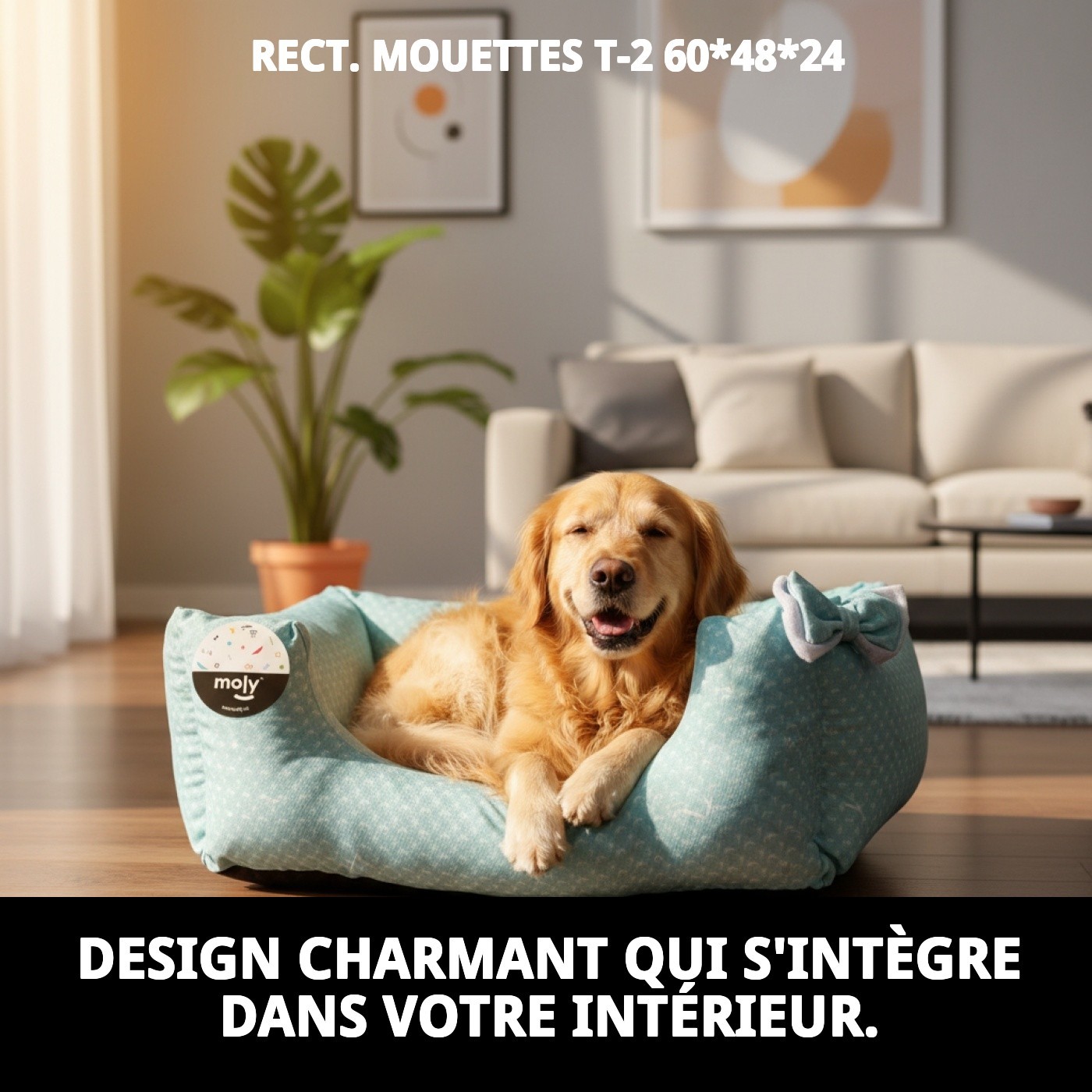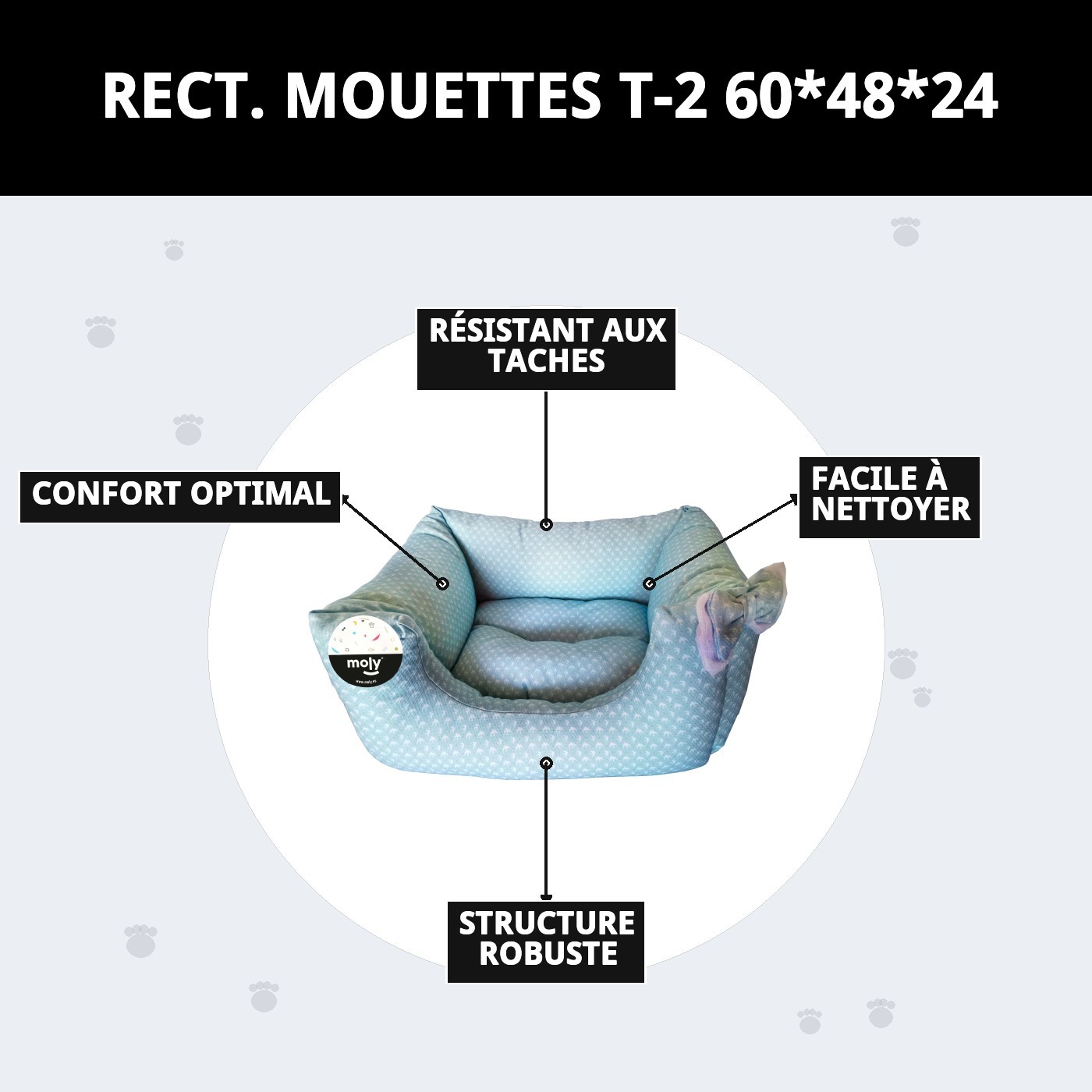 Tout comme nous, nos amis à quatre pattes ont besoin d'un bon repos pour être en bonne santé et heureux. Un endroit confortable les aide à réguler leur énergie et à se sentir plus calmes. Le lit rectangulaire mouette T-2 est parfait pour fournir ce refuge idéal. Avec des dimensions de 60*48*24 cm, c'est la taille parfaite pour que votre animal se blottisse et se sente comme dans un véritable nid.