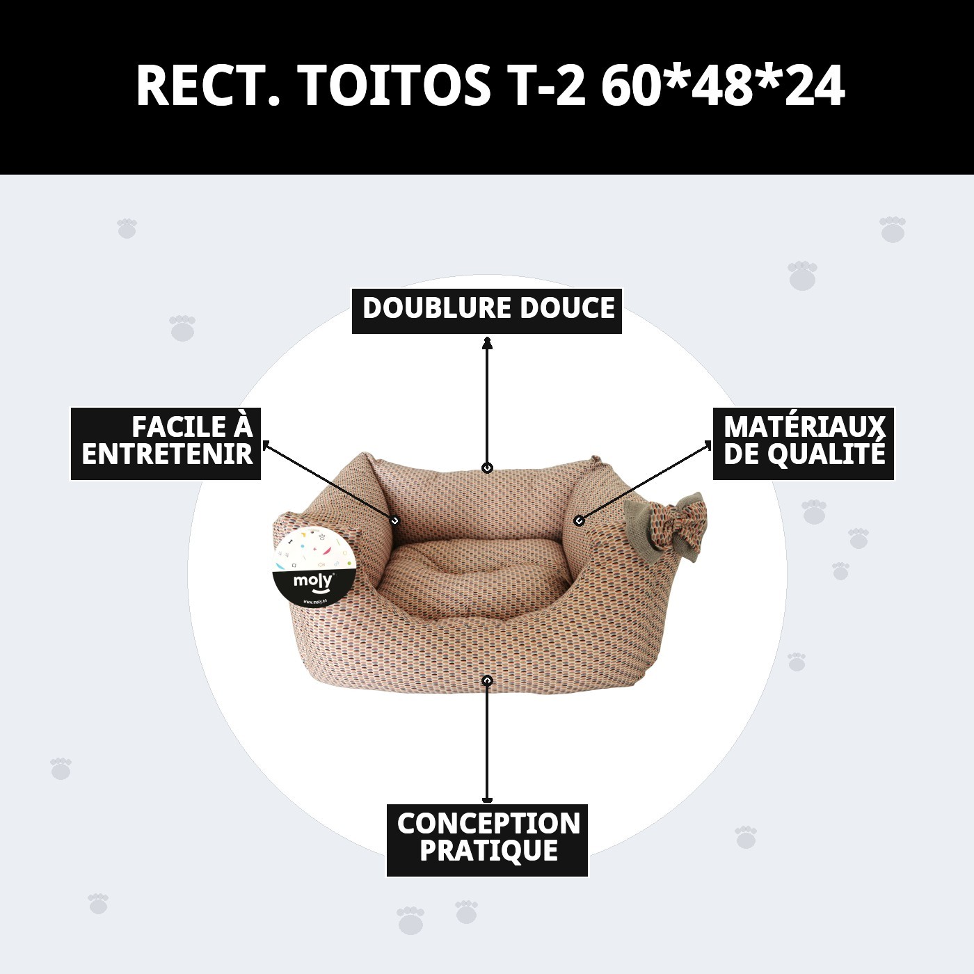 Comme vous le savez, un bon repos est fondamental pour la santé et le bien-être de votre animal. Le lit rect. topitos T-2 60*48*24 offre un endroit sûr et confortable où votre ami à quatre pattes pourra se détendre après une journée pleine d'aventures. Pouvez-vous imaginer votre compagnon à fourrure profitant de ses siestes dans un environnement si accueillant ? C'est une image qui réchauffe le cœur.