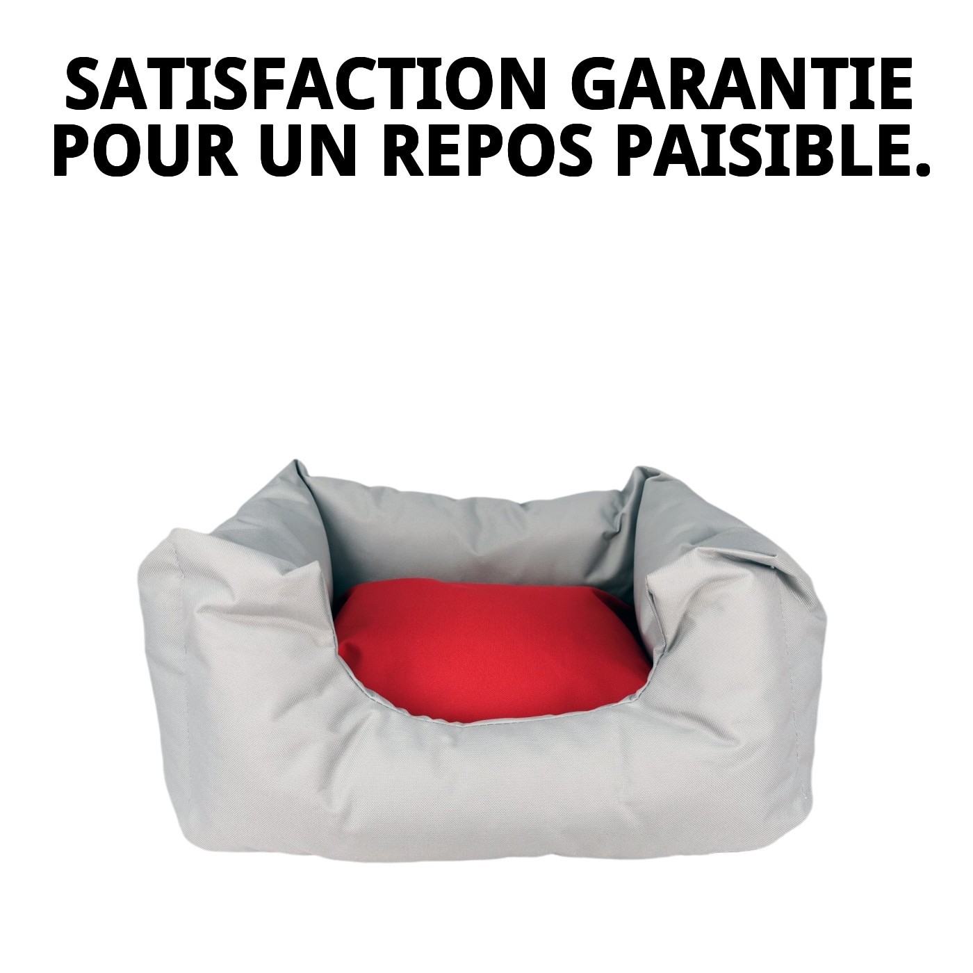 En plus d'être facile à nettoyer, le lit rectangulaire imperméable gris T-1 devient un refuge pour votre animal. Pensez à ces jours de pluie ou de froid où il veut juste se blottir et se sentir en sécurité. En lui offrant un espace confortable et accueillant, vous prenez soin de son bien-être physique, mais aussi de son bien-être émotionnel. Les animaux, tout comme nous, ont besoin d'un endroit où se sentir protégés et aimés.