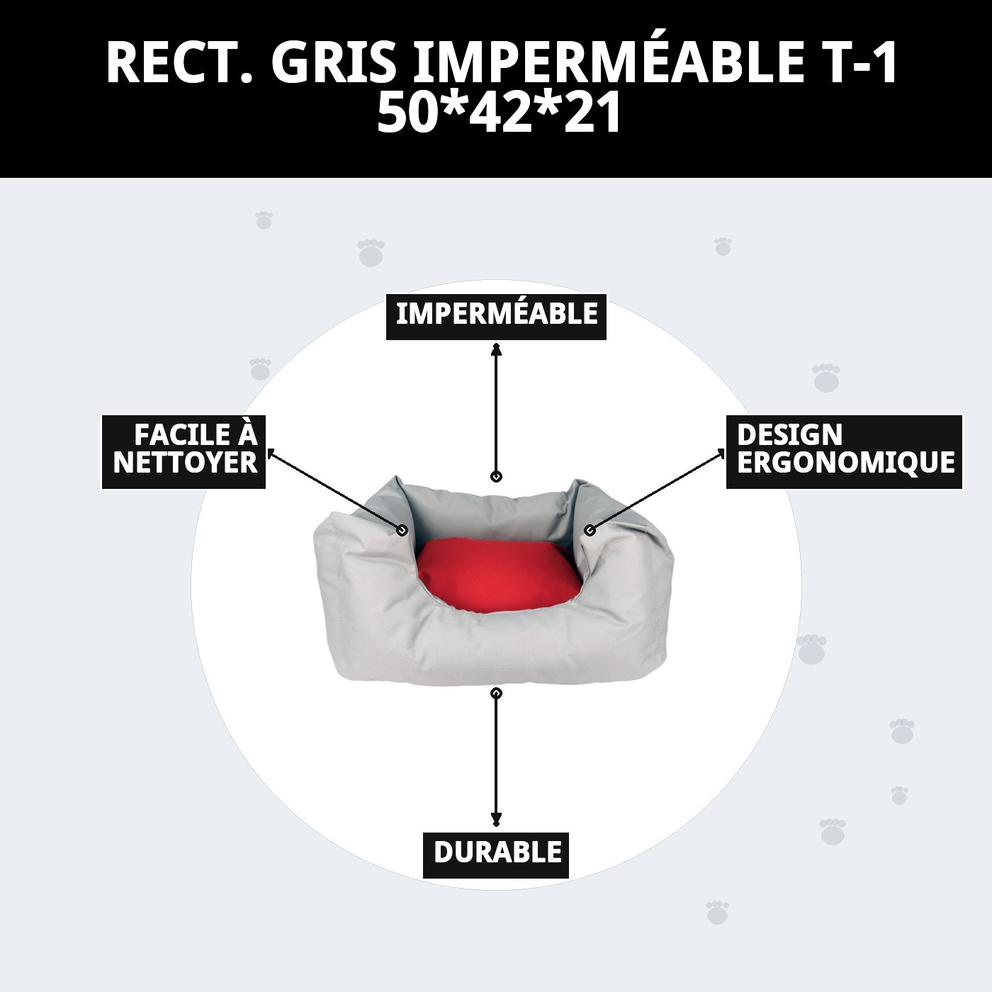 LIT RECTANGULAIRE IMPERMÉABLE GRIS T-1 50*42*21