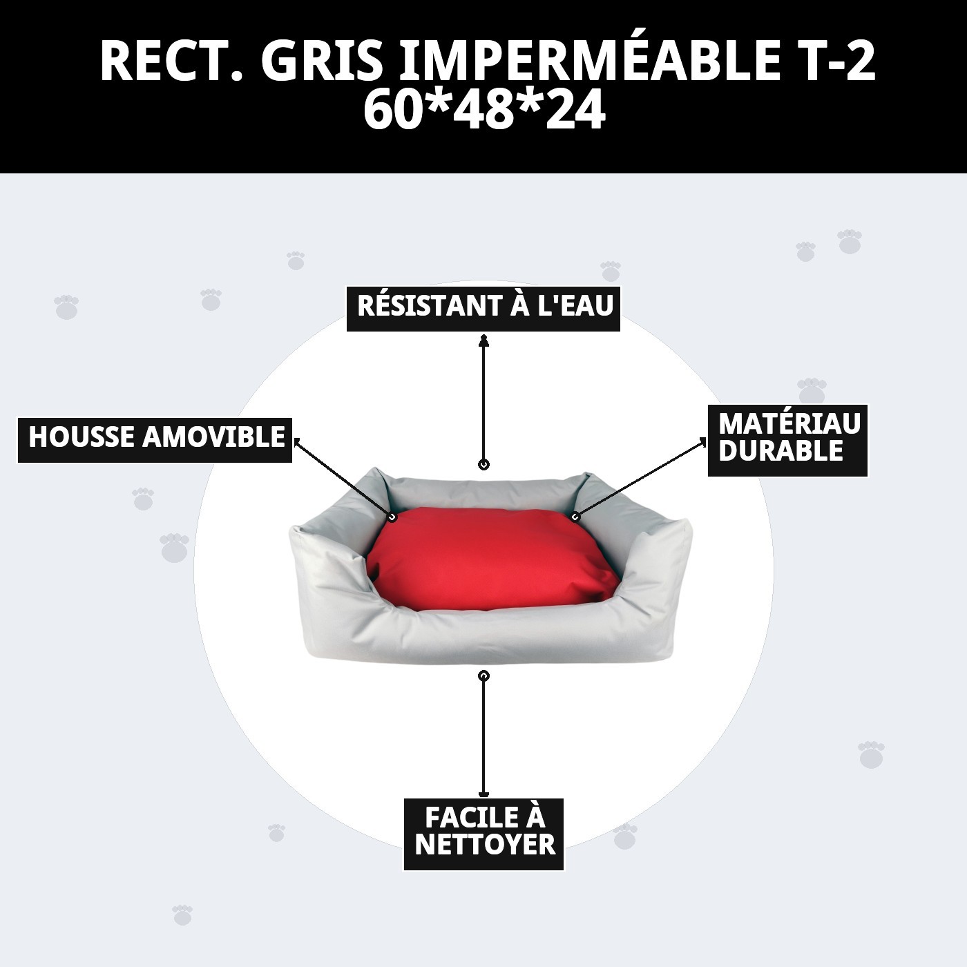 Le lit rectangulaire imperméable gris T-2 est idéal pour votre animal de compagnie, car il dispose d'un design ergonomique et d'un tissu imperméable, garantissant une hygiène exceptionnelle. De plus, sa housse est démontable, facilitant son nettoyage. Votre compagnon à quatre pattes mérite un repos confortable et propre.