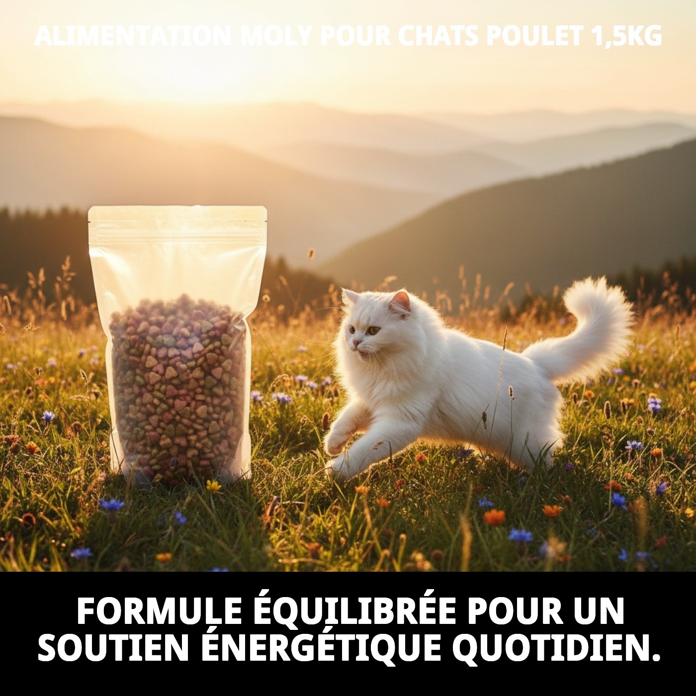 Découvrez la nourriture Moly pour chats poulet 1,5 kg, une option délicieuse et nutritive pour votre félin. Avec des antioxydants naturels et une forte teneur en taurine, cet aliment complet favorise une vie saine. Son mélange d'ingrédients de qualité fournit tous les nutriments dont votre chat a besoin pour rester actif et heureux.
