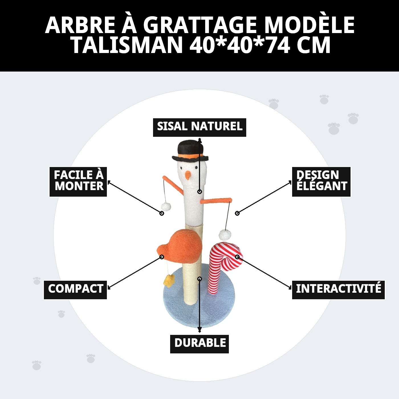 Découvrez l'arbre à gratter modèle Talisman 40*40*74 cm, la solution idéale pour vos chats. Avec son griffoir en sisal naturel et ses balles interactives, il offre du divertissement tout en prenant soin de leurs griffes. Protégez vos meubles et répondez à leur instinct de gratter, en faisant de cet accessoire un incontournable dans votre maison.