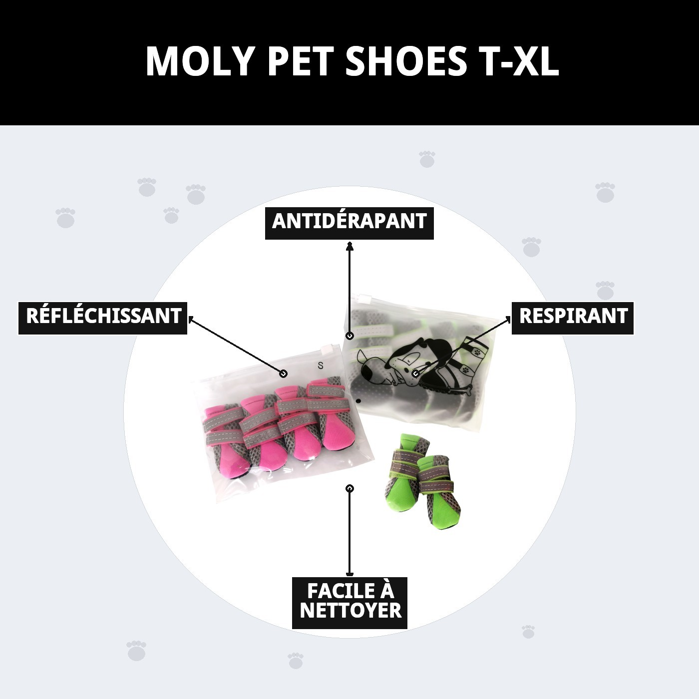 Découvrez notre collection de chaussures Moly pour animaux T-XL, conçues pour offrir une protection optimale à votre fidèle compagnon. Grâce à leur design antidérapant et respirant, ces chaussures assurent un confort inégalé tout en garantissant la sécurité lors de vos promenades. La fonction réfléchissante permet de garder votre animal visible dans l'obscurité, tout en préservant la propreté de votre intérieur. Offrez à votre animal le meilleur avec nos chaussures Moly !