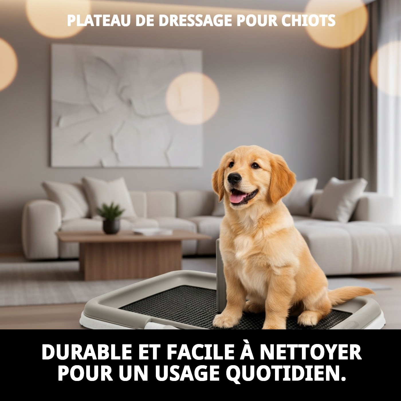 - Emplacement : Placez le bac dans un endroit calme et accessible pour que votre chiot se sente en sécurité en l'utilisant.