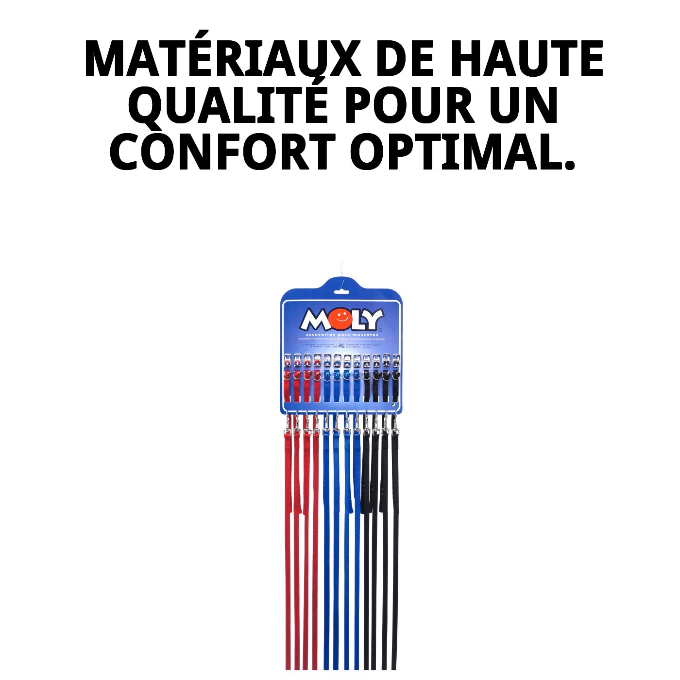 Lorsque vous décidez de sortir vous promener avec votre animal, le collier et la laisse deviennent des éléments essentiels. Ils ne servent pas seulement à garder votre animal sous contrôle, mais sont aussi une façon de montrer son style. Avec le collier et laisse lisses avec grelot, vous garantissez non seulement la sécurité de votre animal, mais vous ajoutez également une touche de plaisir. Rien de tel que le son du grelot pour égayer l'ambiance !
