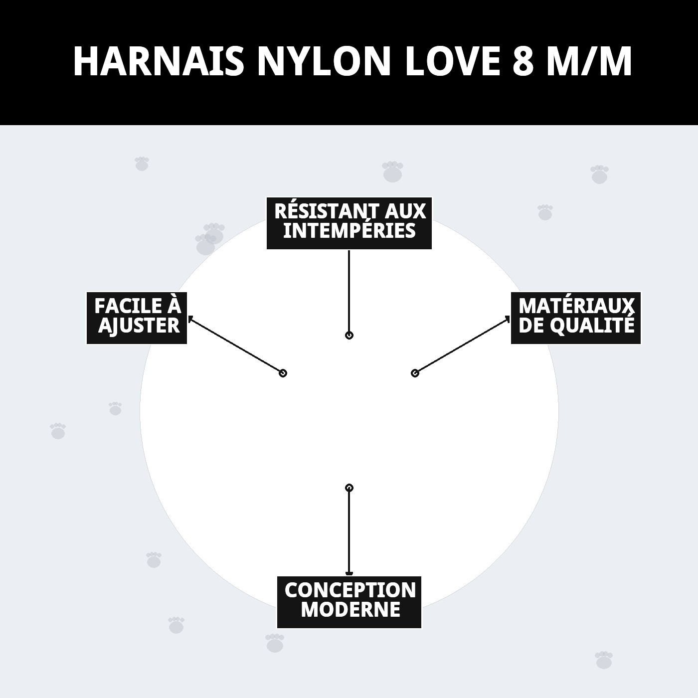 Caractéristiques du harnais nylon love 8 m/m