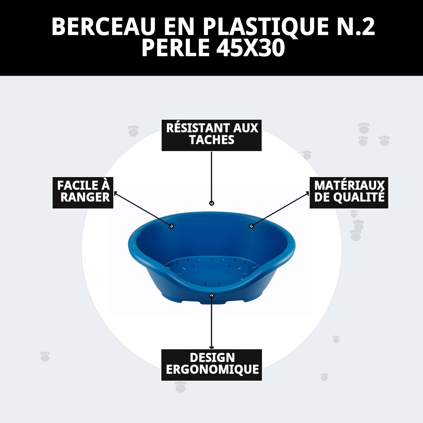 Le lit en plastique N.2 Perla 45x30 est le refuge parfait pour votre animal de compagnie. Son design ergonomique et ses matériaux résistants garantissent confort et durabilité. Idéal pour les petits chiens et chats, il est facile à nettoyer et à transporter. Transformez le repos de votre compagnon à quatre pattes en un moment spécial avec ce lit pratique !