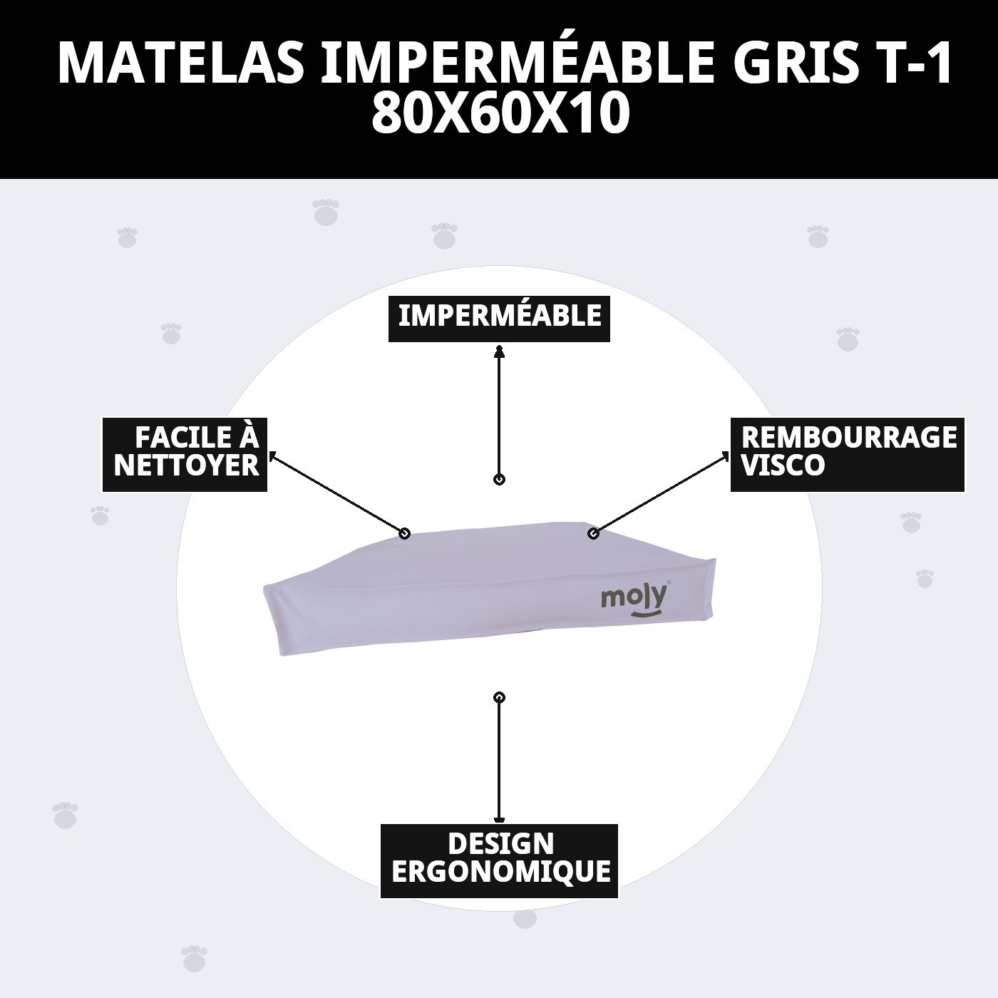MATELAS IMPERMÉABLE GRIS T-1 80X60X10