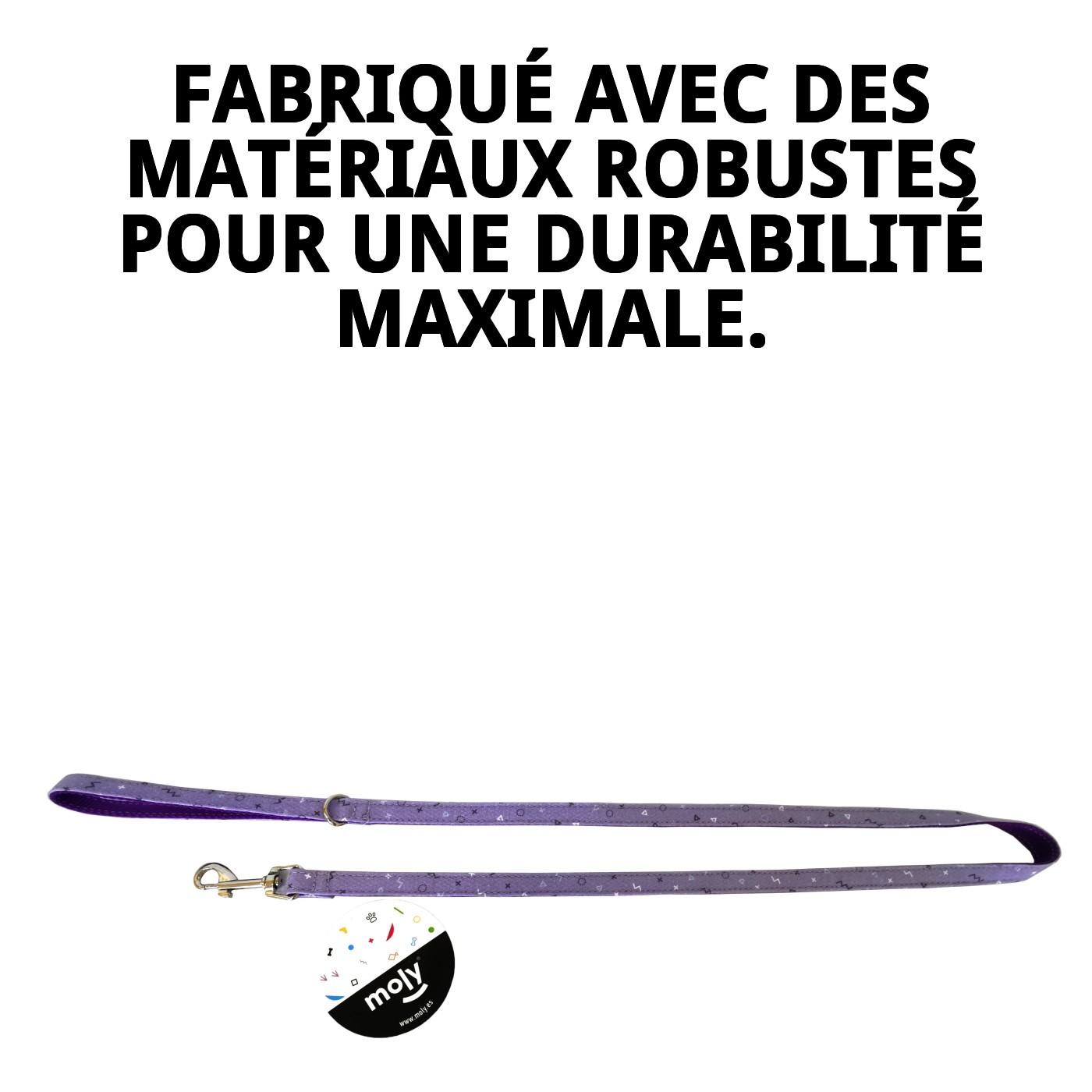 Que vous alliez faire une courte promenade dans le quartier ou profiter d'une longue marche à la campagne, la laisse Moly est idéale pour toutes les situations. Sa polyvalence en fait un accessoire indispensable. De plus, si vous aimez la mode, vous pourrez l'associer à d'autres accessoires comme des colliers ou des harnais de la même gamme.