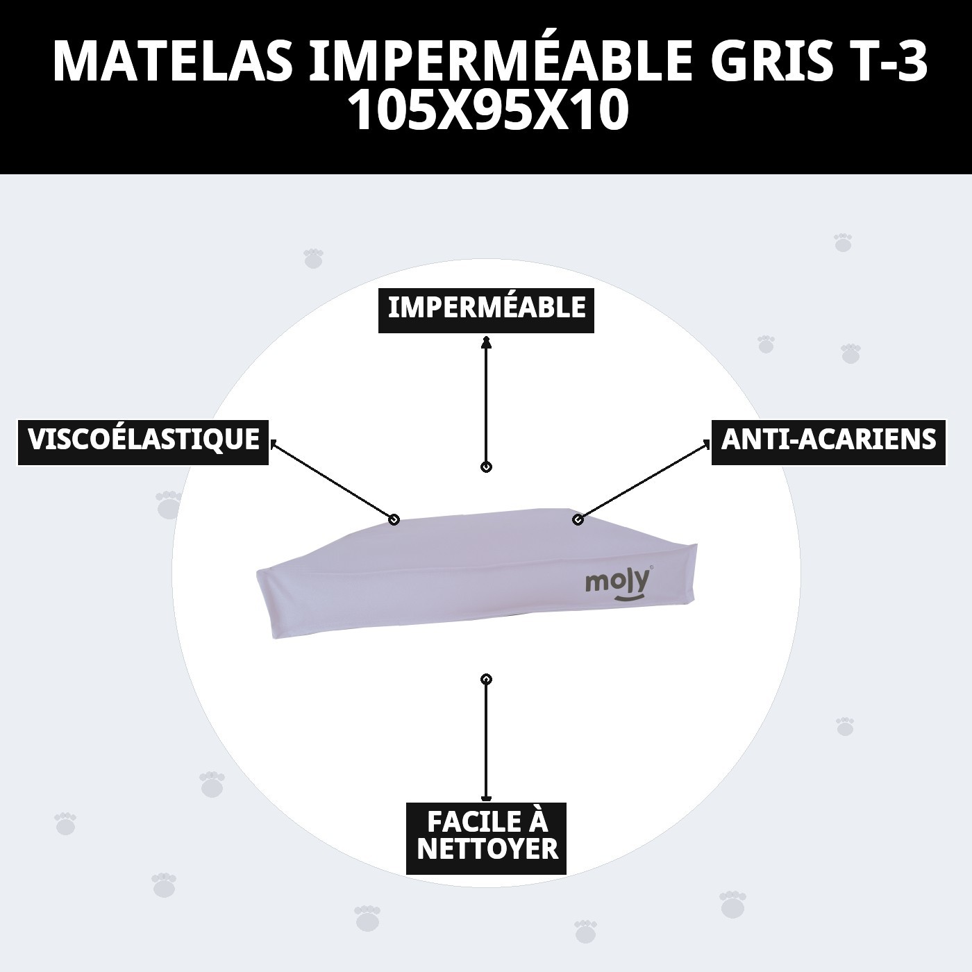 MATELAS IMPERMÉABLE GRIS T-3 105X95X10