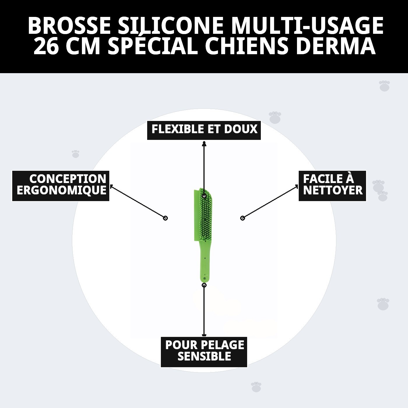 BROSSE MULTIUSAGE EN SILICONE 26 CM SPÉCIALE CHIENS DERMA