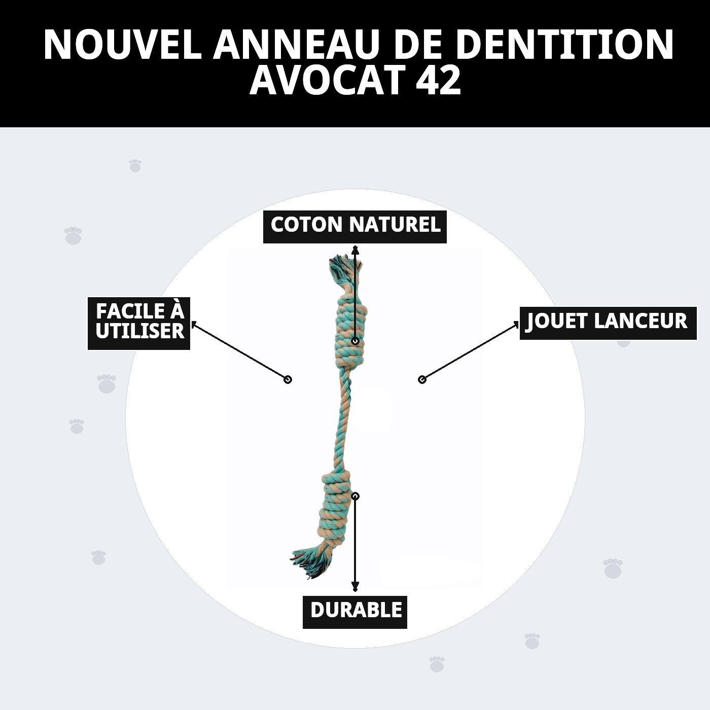 Découvrez le NEW MORDEDOR AVOCAT 42, un jouet lanceur en coton 100% naturel qui fera le bonheur de votre chien tout en le maintenant actif. Grâce à son design en corde, il favorise non seulement l'exercice, mais aide également à nettoyer les dents de votre animal et à prévenir le tartre. Amusement et santé dentaire pour votre compagnon à quatre pattes dans un seul produit !