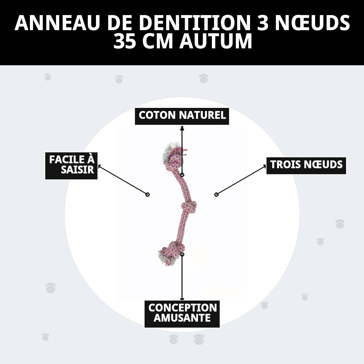 Pourquoi choisir le jouet à mâcher 3 nœuds 35 cm autum ?