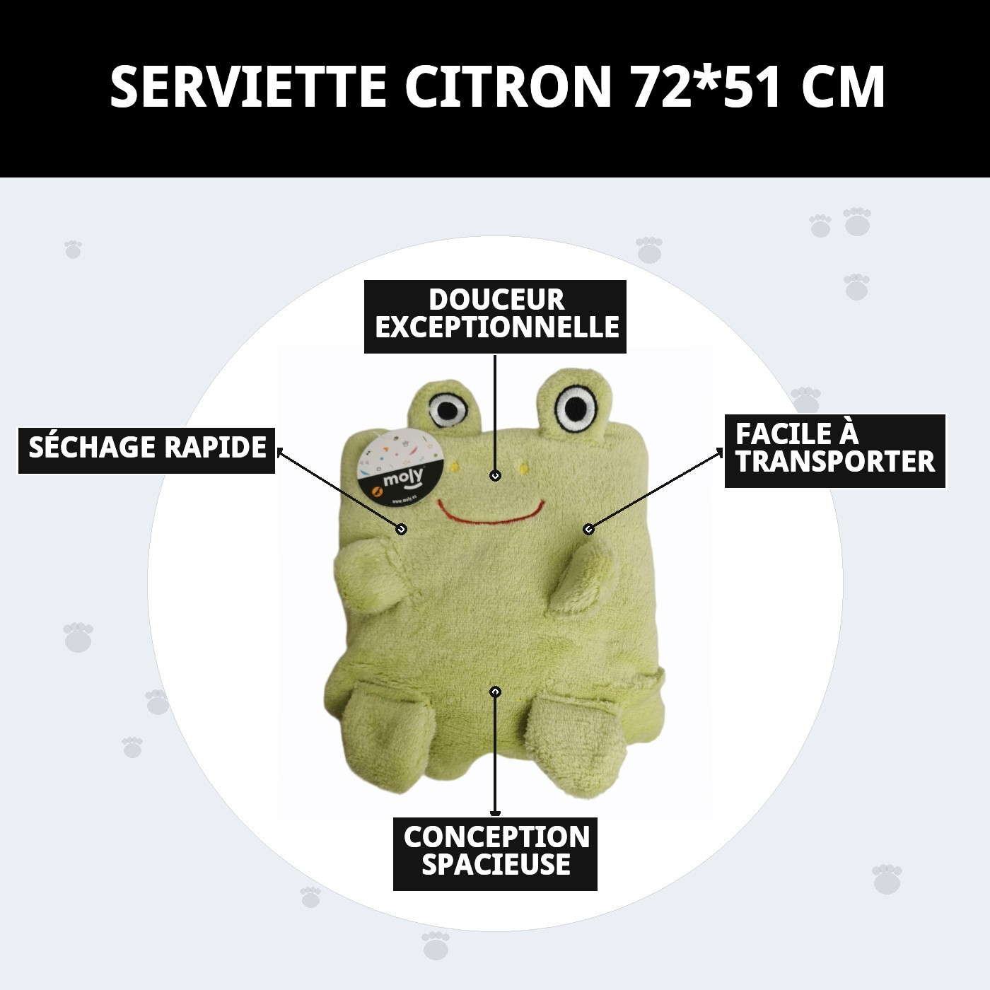 La serviette Lemon de 72x51 cm est parfaite pour chouchouter votre animal de compagnie. Douce et confortable, cette serviette garantit un séchage rapide et efficace après le bain ou une sortie amusante sous la pluie. Idéale pour garder votre compagnon à quatre pattes toujours frais et propre. Ne passez pas à côté de cet indispensable !