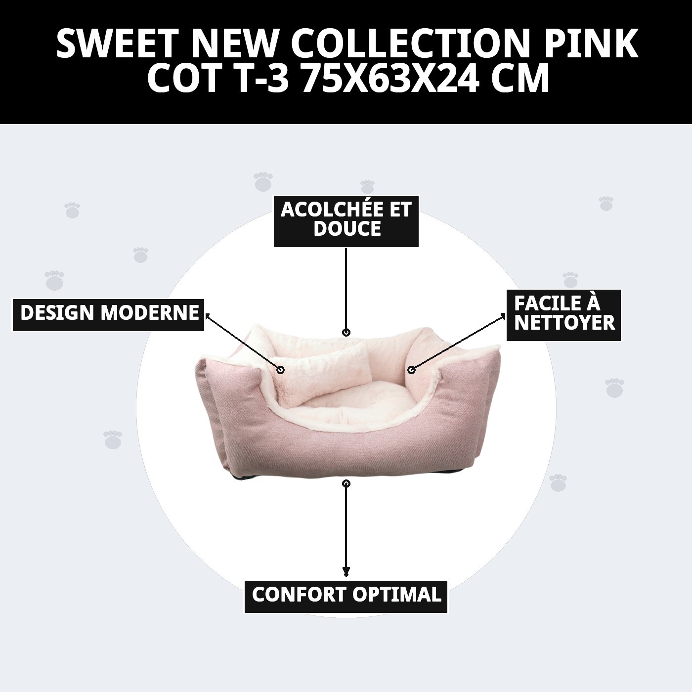 La NOUVELLE COLLECTION DULCE LIT ROSE T-3 est le refuge idéal pour votre animal de compagnie, avec des dimensions de 75x63x24 cm qui garantissent confort et style. Son design charmant et son rembourrage doux offrent un espace accueillant, parfait pour que votre compagnon à quatre pattes se repose. Offrez à votre cher ami le confort qu'il mérite.