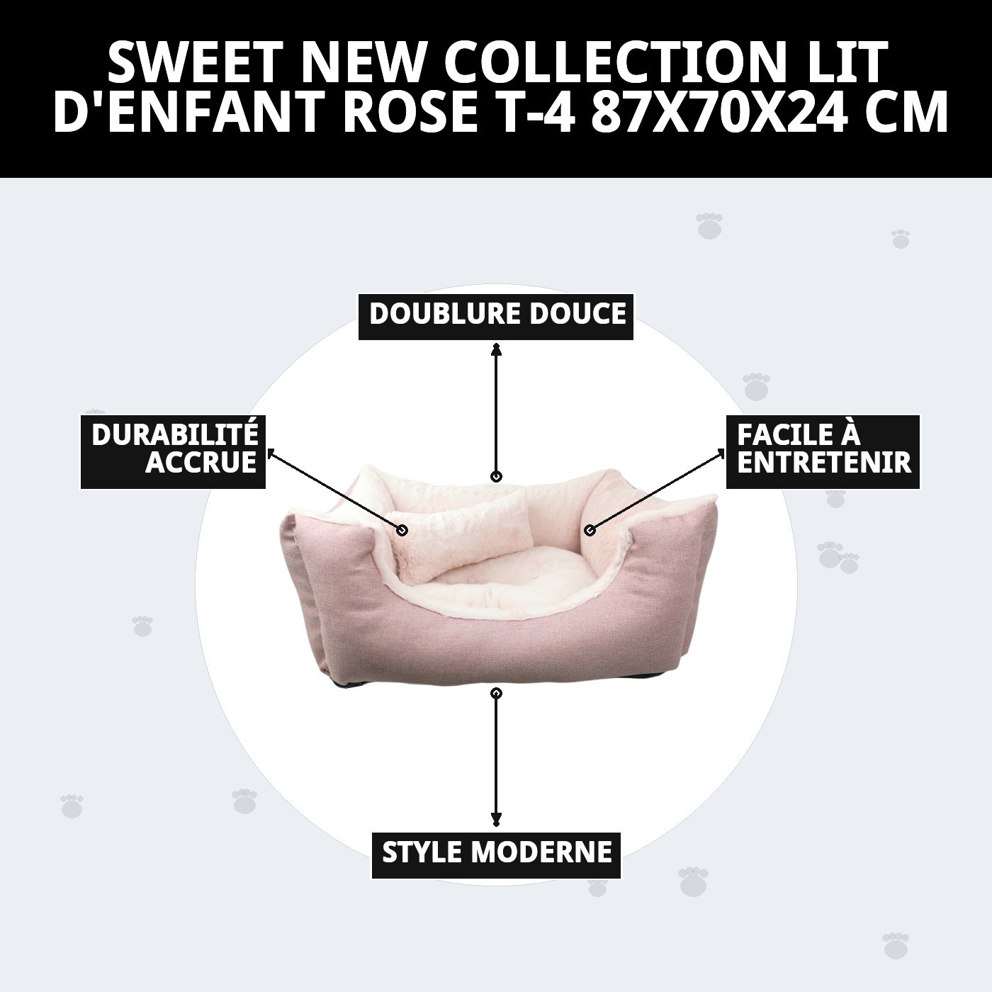 La NOUVELLE COLLECTION DULCE LIT ROSE T-4 est le refuge idéal pour votre animal de compagnie, avec des dimensions de 87x70x24 cm. Son design élégant et sa douce couleur rose apportent une touche charmante à n'importe quel coin de votre maison. Offrant confort et chaleur, elle devient rapidement l'endroit préféré de votre ami à quatre pattes.