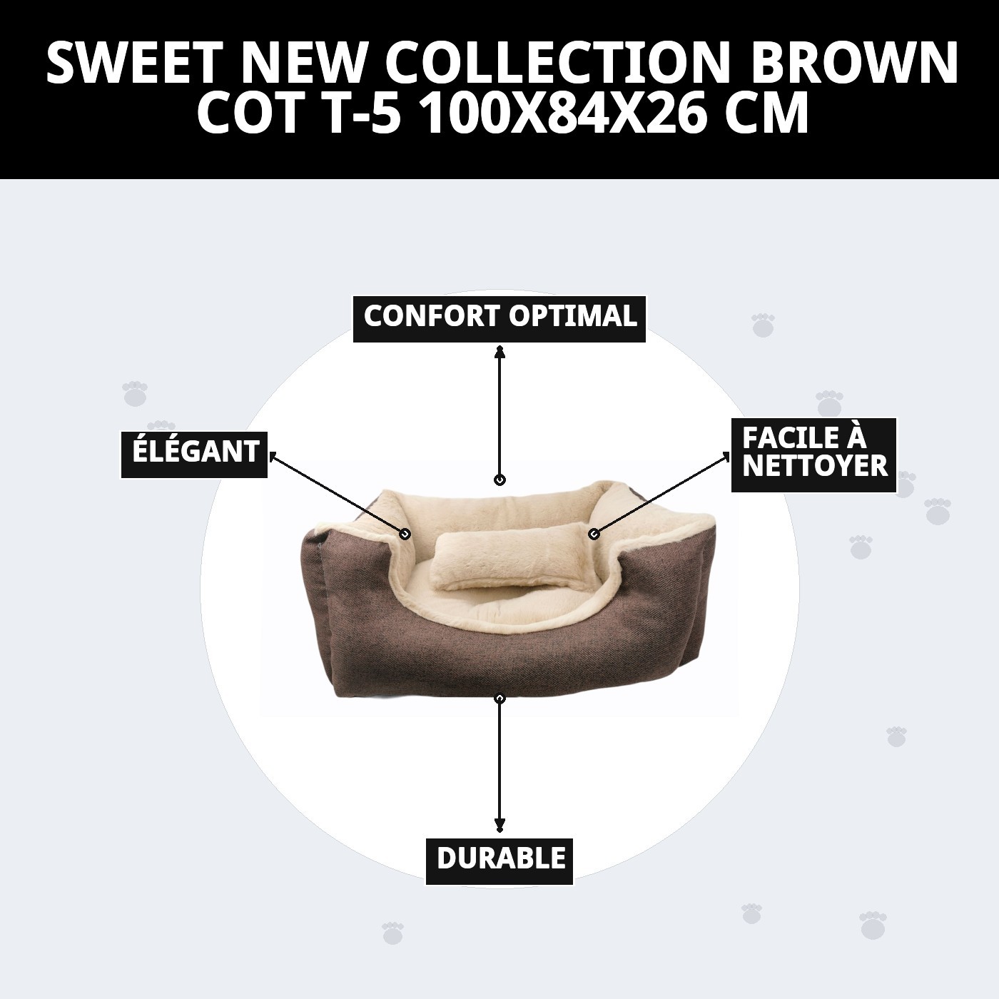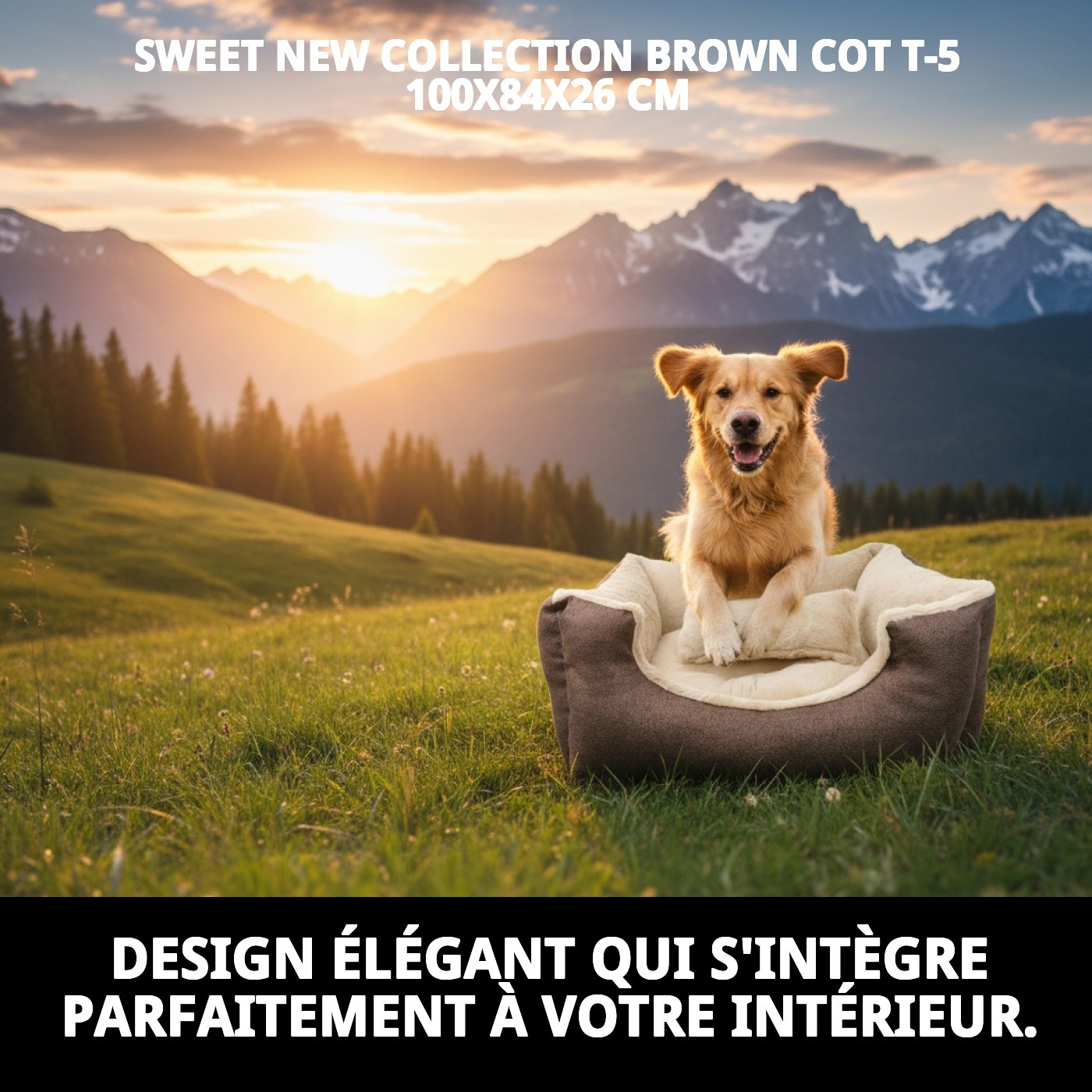 La couche marron New Collection T-5 de Moly, mesurant 100x84x26 cm, offre à votre chien un repos optimal et élégant. Son design confortable et accueillant garantit des moments de détente. Idéale pour n'importe quel coin de votre maison, cette couche deviendra son endroit préféré pour rêver.