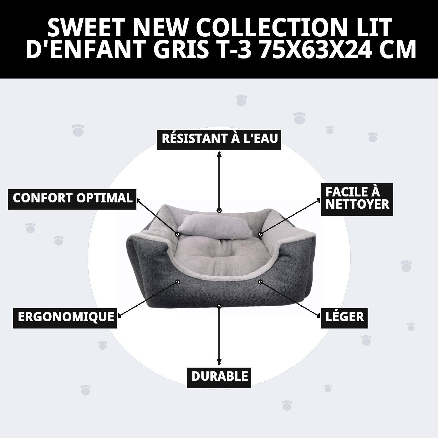 La NOUVELLE COLLECTION DULCE LIT GRIS T-3 est le refuge parfait pour votre animal de compagnie, mesurant 75x63x24 cm. Avec un design élégant et confortable, elle offre un endroit douillet pour se reposer. Son matériau de haute qualité garantit durabilité et facilité de nettoyage, idéal pour les foyers avec des animaux actifs. Offrez à votre compagnon à quatre pattes un espace où il se sentira spécial !