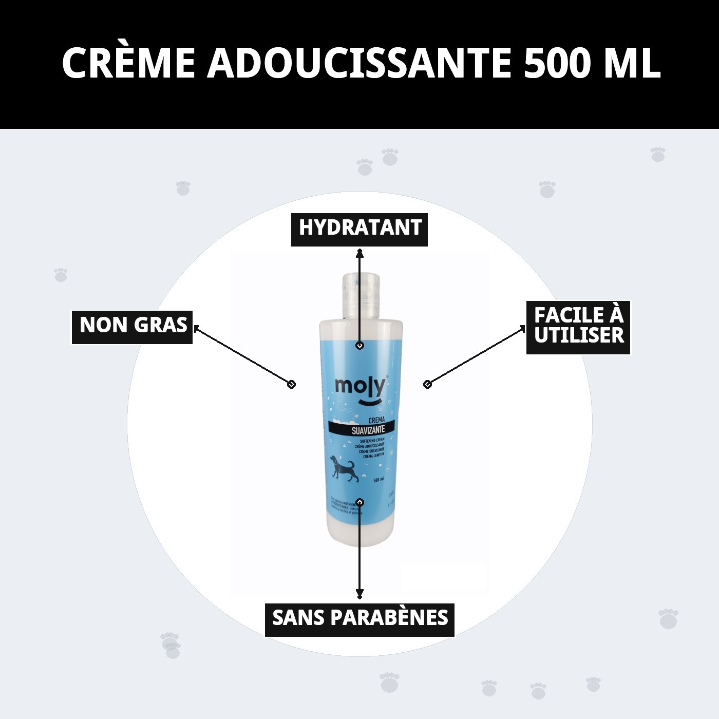 Découvrez notre crème adoucissante de 500 ml, spécialement conçue pour garder le pelage de votre animal doux et soyeux. Sa formule unique nourrit et hydrate, facilitant le démêlage et réduisant l'électricité statique. Offrez à votre meilleur ami le soin qu'il mérite et profitez de moments de caresses agréables !