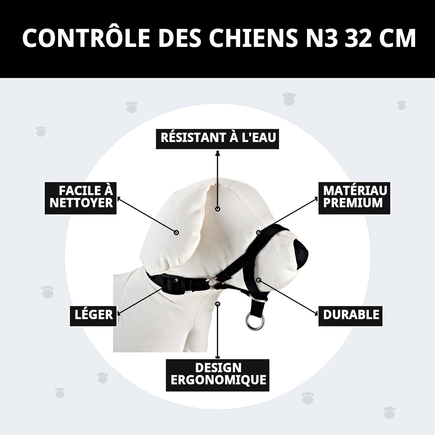 Le DOG CONTROL N3 32 CM est le collier idéal pour les chiens qui ont tendance à tirer. Son design innovant comprend un anneau de direction qui permet une guidance simple et efficace, évitant ainsi les tractions sur le cou. En tenant le museau, il favorise une promenade calme et contrôlée, rendant vos balades plus agréables.