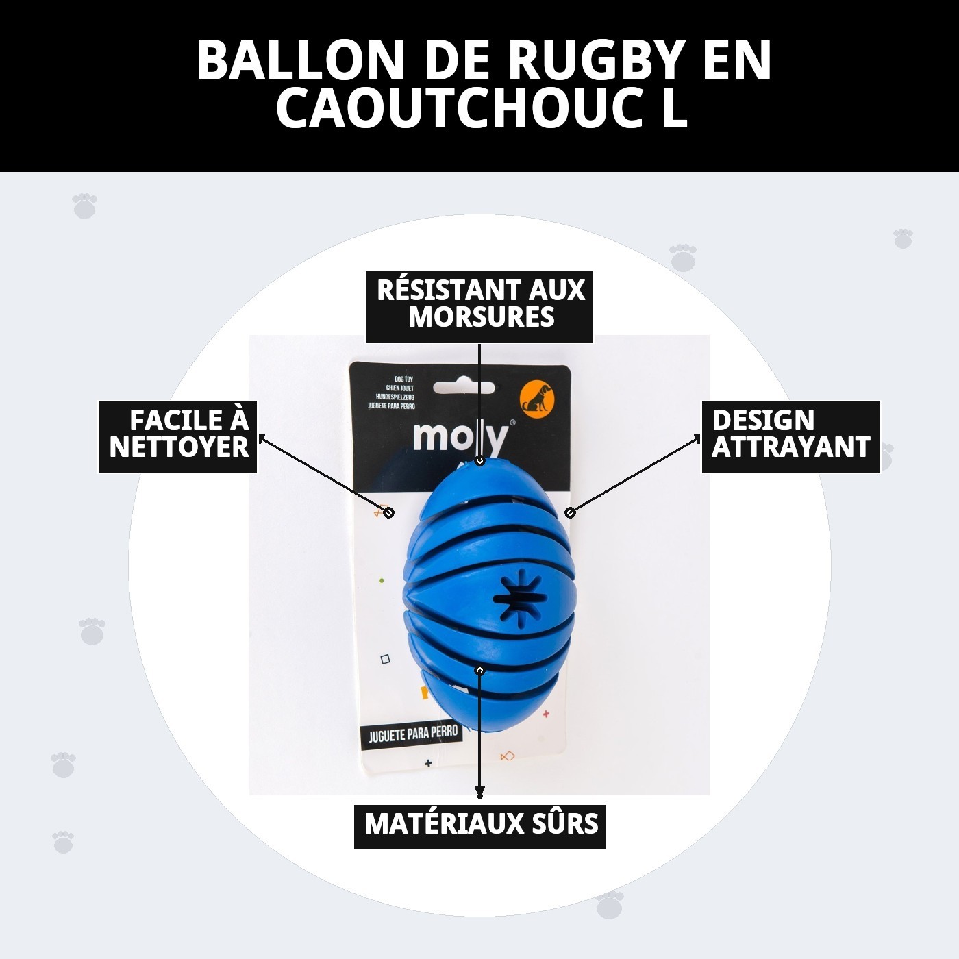 La pelote de rugby en caoutchouc L est le nouveau jouet à mâcher parfait pour votre animal de compagnie. Son design en forme de balle de rugby est non seulement attrayant, mais il est également idéal pour stimuler la mâchoire de votre chien pendant qu'il joue. Offrez-lui des moments de loisir amusants et durables !