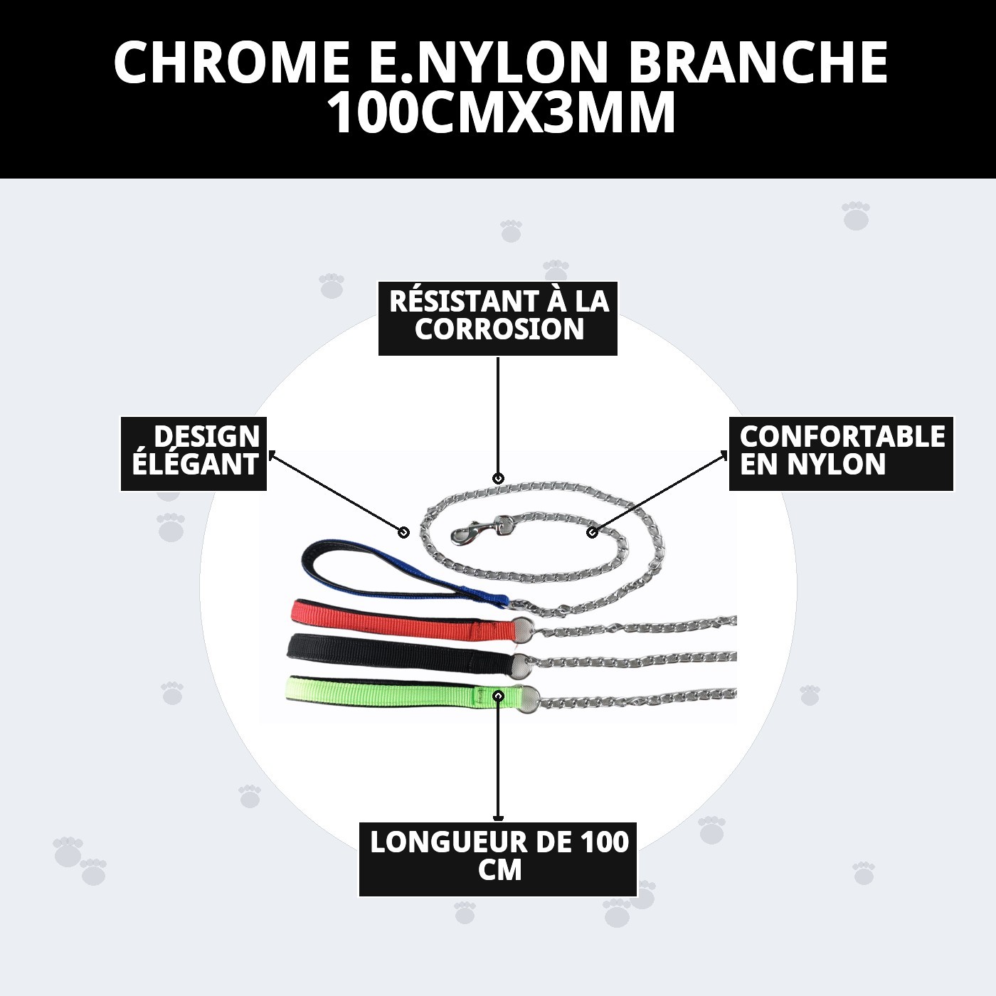 Caractéristiques de la laisse chrome E.Nylon