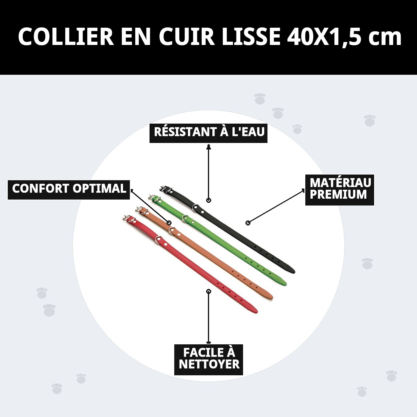 Si vous souhaitez un collier qui allie style, confort et durabilité, n'hésitez pas à envisager le collier en cuir lisse 40x1,5 cm. Votre animal vous en sera reconnaissant à chaque promenade !
