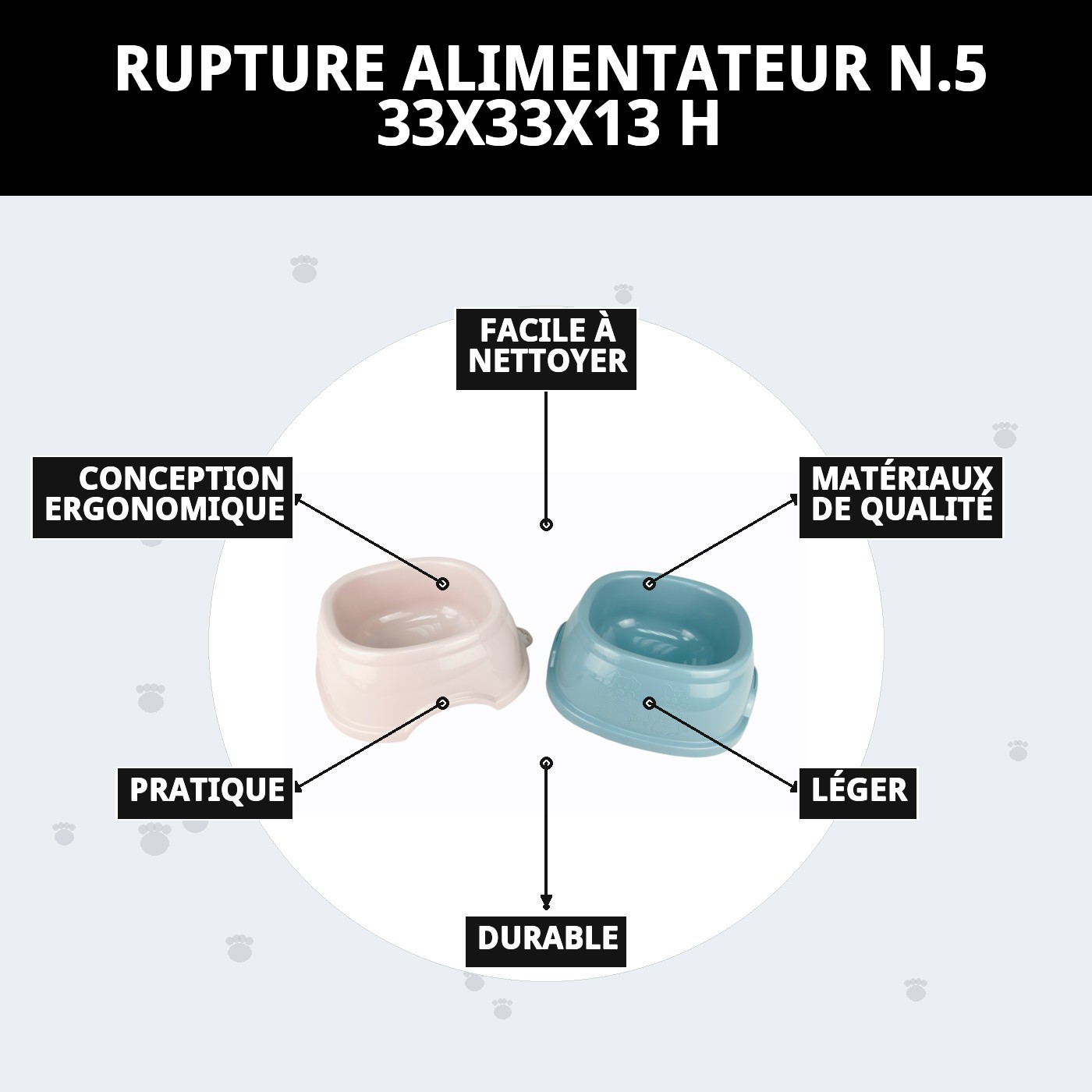- Confort : La hauteur appropriée du bol aide votre animal à manger dans une posture plus naturelle.