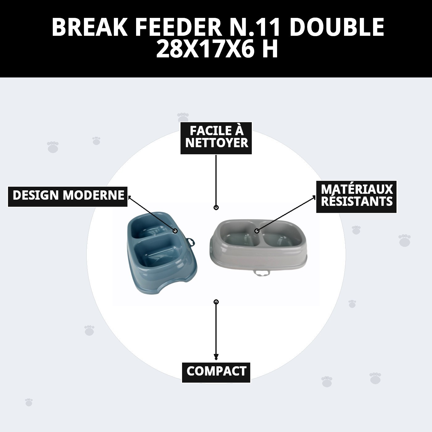 Le bol Break N.11 double 28x17x6h est une option fantastique pour tout propriétaire d'animal. Son design pratique, ses matériaux de qualité et sa facilité de nettoyage en font un produit indispensable dans votre maison. De plus, c'est un pas vers un mode de vie plus sain pour votre animal. Ne le manquez pas !