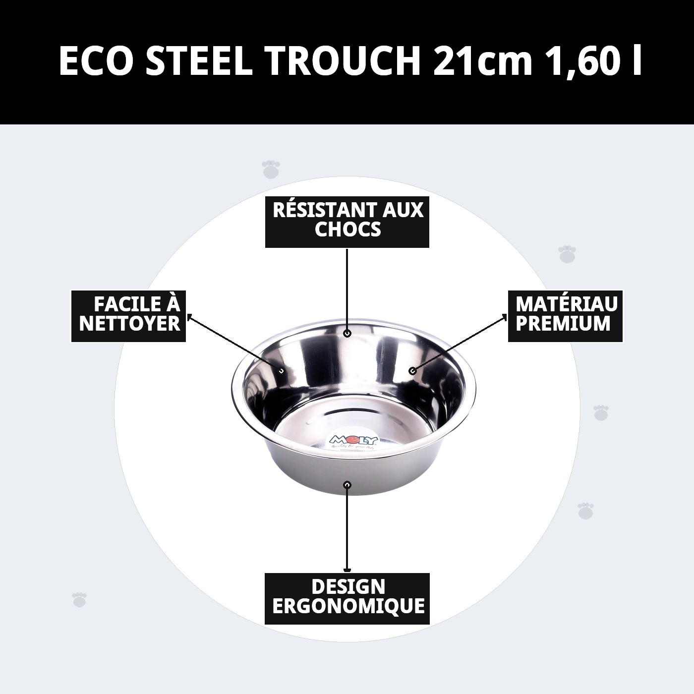 Le bol en acier éco a un diamètre de 21 cm et une capacité de 1,60 litre, ce qui en fait l'option parfaite pour les chiens et les chats de taille moyenne. L'acier inoxydable est un matériau durable et facile à nettoyer, ce qui signifie que vous pouvez maintenir l'hygiène sans effort. De plus, son design élégant s'adapte à tout style de décoration intérieure.