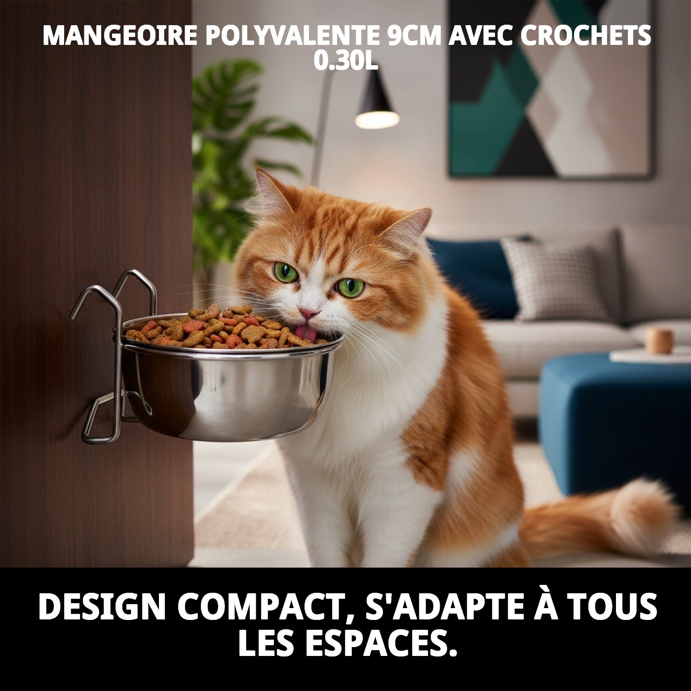 Le bol multifonction a un diamètre de 9 cm, ce qui le rend parfait pour les chats et les petits chiens. Son design compact permet de l'adapter à n'importe quel coin de votre maison, que ce soit dans la cuisine, le salon ou même dans le jardin. De plus, il est équipé de crochets qui garantissent que le bol reste en place pendant que votre animal mange avec enthousiasme. Fini les désastres de nourriture éparpillée !
