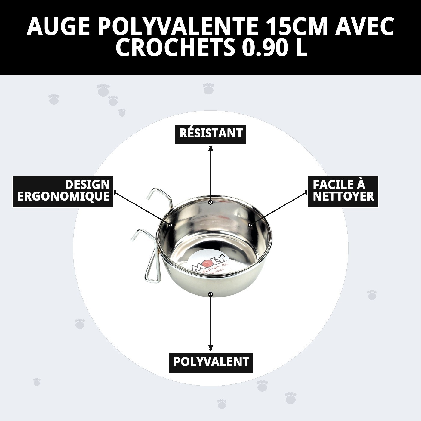 Découvrez le pratique bol multi-usages 15cm avec crochets d'une capacité de 0,90 L, idéal pour vos animaux de compagnie. Avec un diamètre de 15 cm, ce bol s'adapte parfaitement à tout espace et est facile à utiliser. Parfait pour éviter les déversements et garder la nourriture toujours à portée de main.