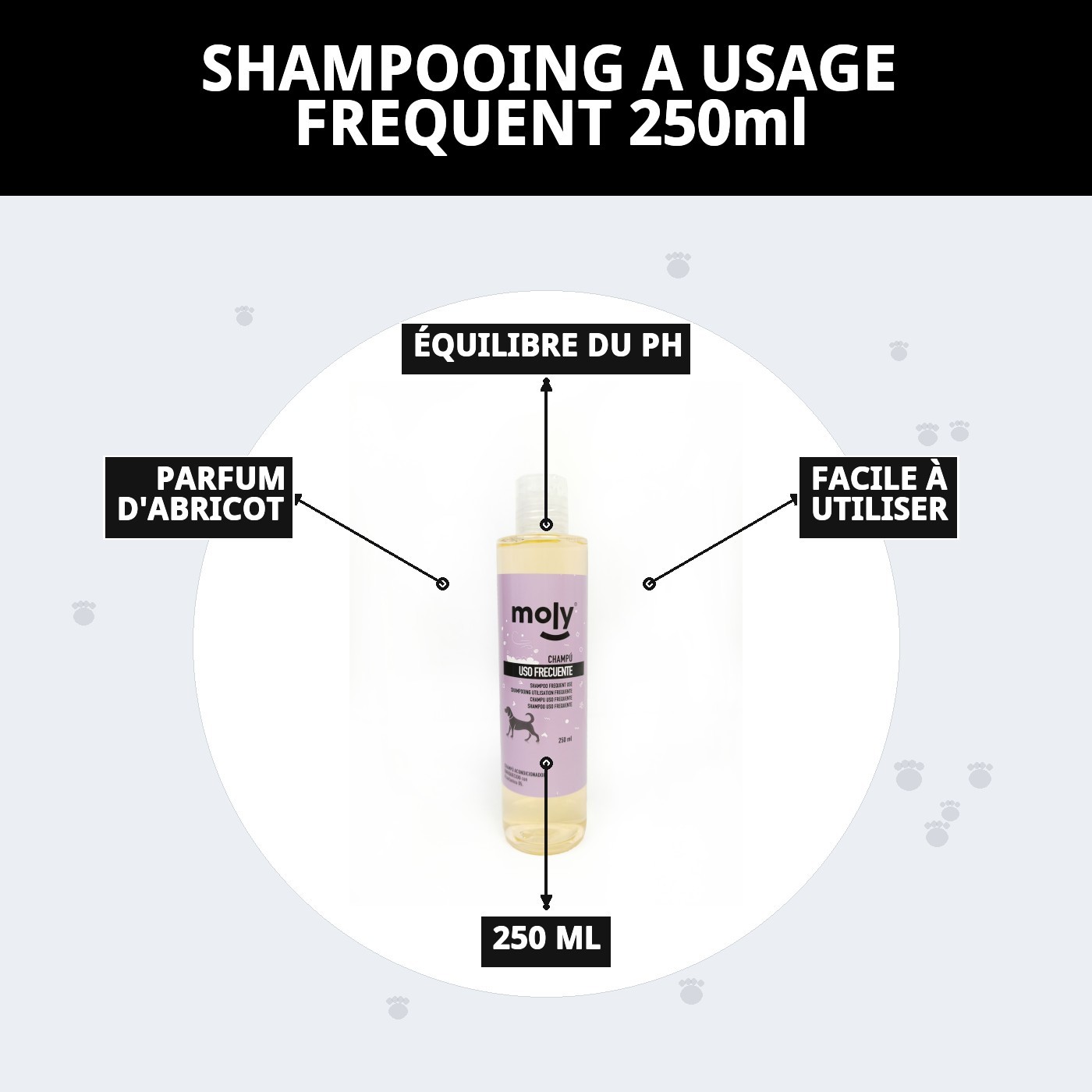 Le shampoing usage fréquent de 250ml est parfait pour garder votre chien propre et doux. Enrichi en Provitamine B5, il équilibre le pH de sa peau, permettant une utilisation régulière sans irritations. Sa formule douce garantit un pelage brillant et sain, avec un délicieux parfum d'abricot.