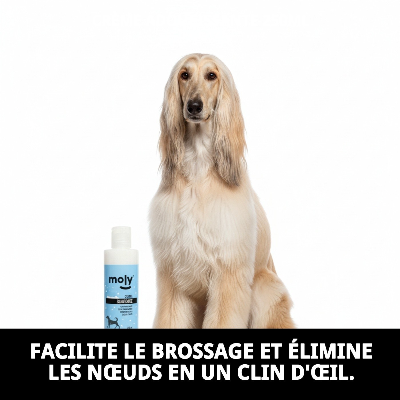 La crème adoucissante pour chiens et chats de Moly est idéale pour les pelages longs. Sa formule enrichie en collagène et en protéines offre douceur et élasticité, facilitant le brossage et éliminant les nœuds difficiles. De plus, elle aide à restaurer l'équilibre de la peau. C'est une option sûre et efficace pour le soin de votre animal de compagnie !