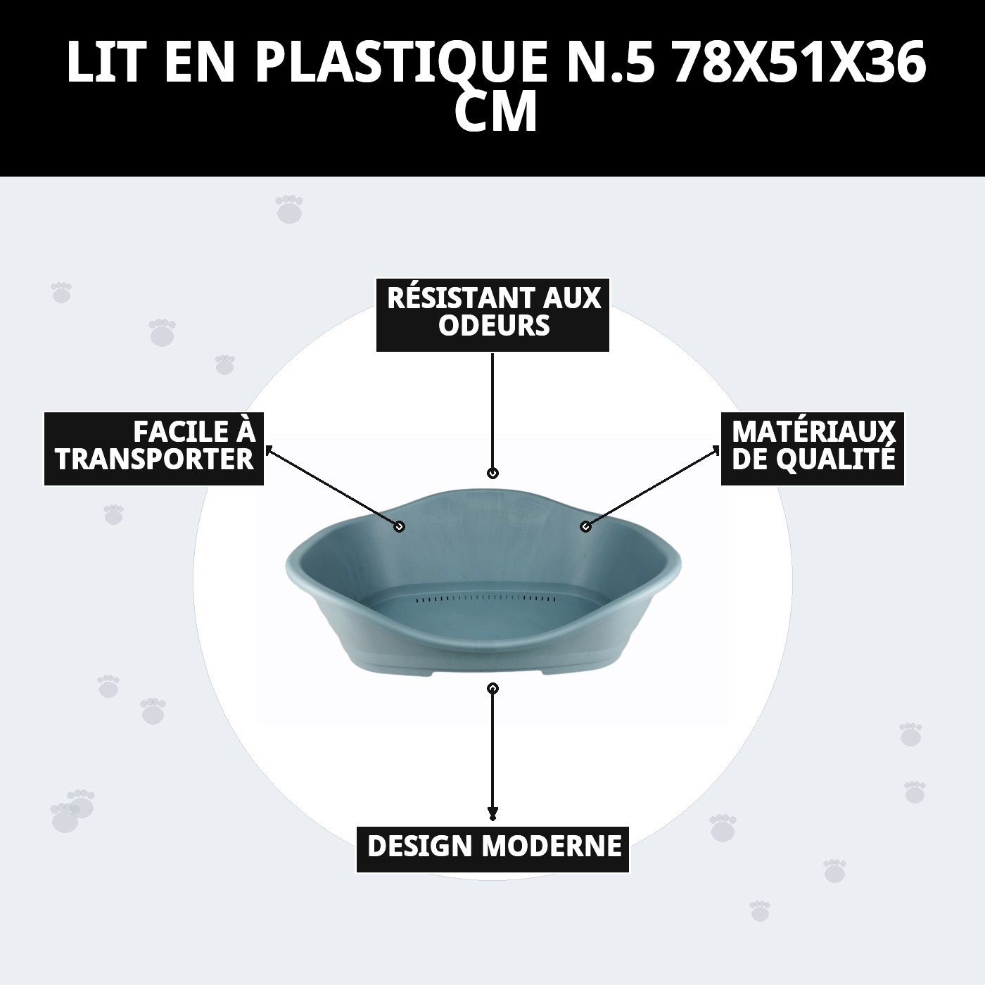 Choisir le bon endroit pour que votre animal dorme n'est pas seulement une question de confort, mais aussi de santé. Le lit en plastique N.5 est conçu pour offrir un repos optimal, grâce à son matériau durable qui ne retient pas les odeurs. De plus, sa facilité d'entretien est un grand avantage pour ceux qui préfèrent passer moins de temps à nettoyer.