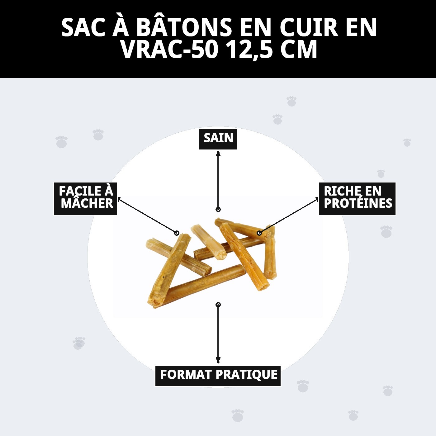 Découvrez nos délicieuses barres pour chiens, fabriquées à partir de cuir cru séché et enroulé. Parfaites pour divertir votre compagnon à quatre pattes ou comme snack entre les repas, ces rouleaux à mâcher offrent bien plus qu'un simple plaisir. En mâchant, votre chien renforce non seulement sa denture et ses gencives, mais contribue également à réduire la formation de tartre. Offrez à votre fidèle ami un moment de bonheur et de santé avec nos barres savoureuses, disponibles en sac de 50 unités.