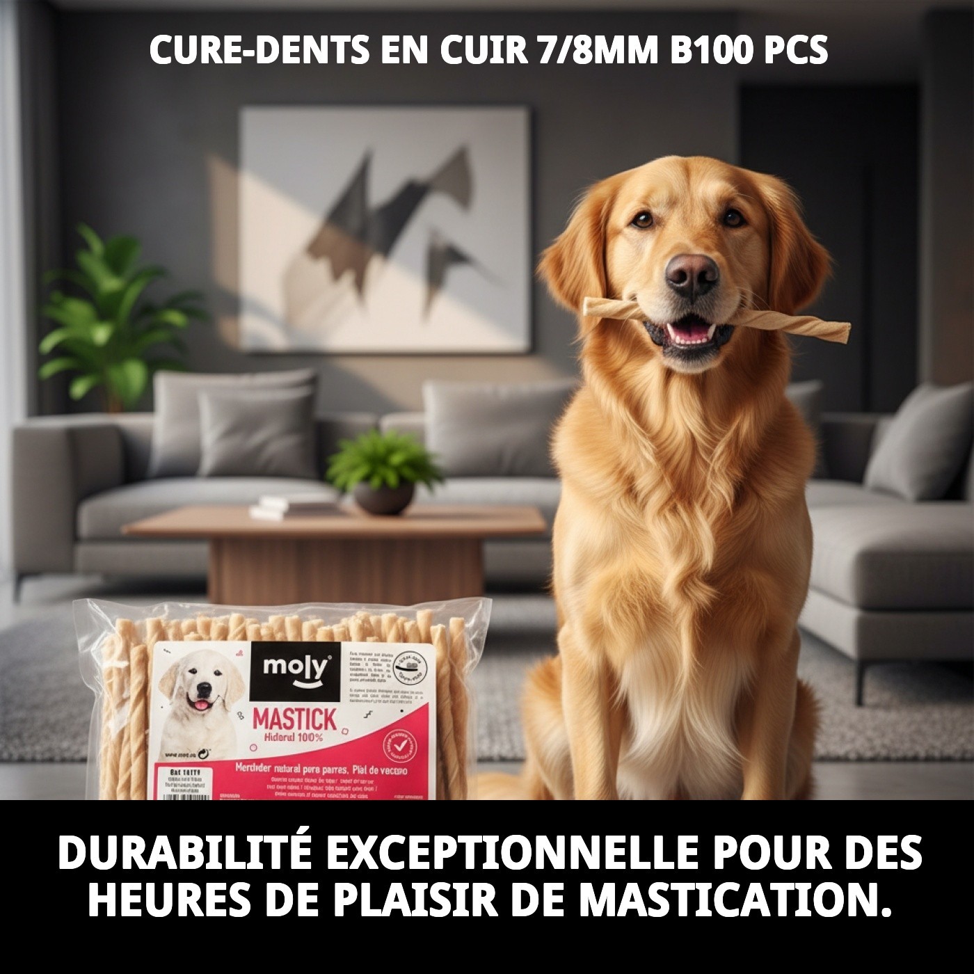 Les bâtonnets en cuir sont plus que de simples jouets ; ils sont une manière de prendre soin de la santé dentaire de votre chien. En mâchant, ils aident à éliminer la plaque et le tartre, ce qui contribue à une bouche plus propre et plus saine. De plus, ils sont parfaits pour occuper les chiens qui s'ennuient rapidement.