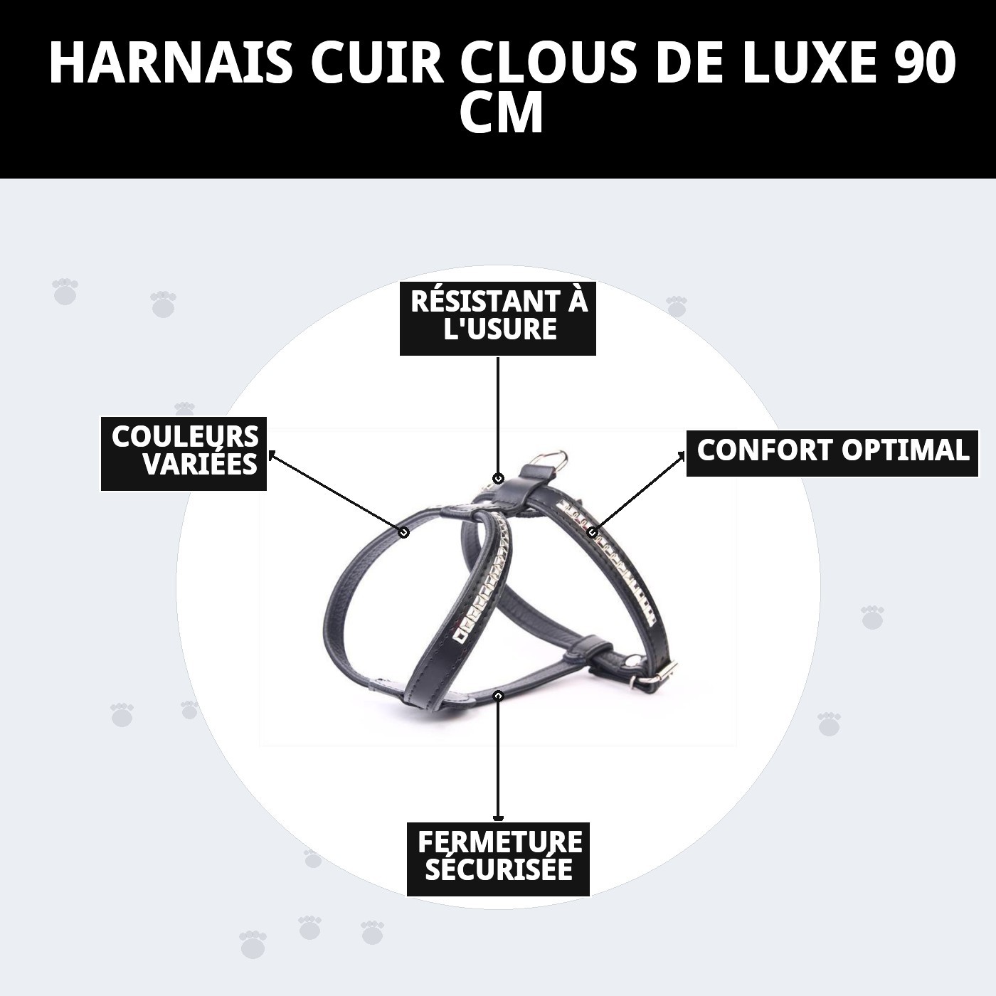 Alors n'hésitez plus et offrez à votre animal le cadeau qu'il mérite. Avec le harnais en cuir luxury clouté 90 cm, vous choisirez un produit qui allie qualité, style et fonctionnalité. Votre chien vous en sera reconnaissant !