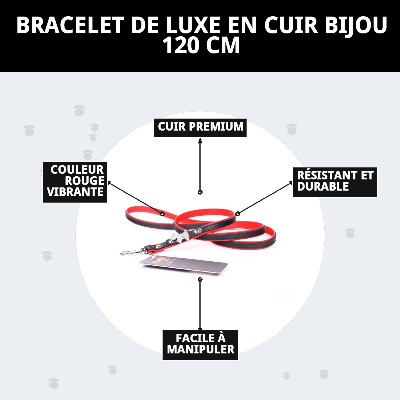 En plus de son apparence impressionnante, cette laisse a également été conçue pour offrir du confort à la fois pour vous et votre animal. La longueur de 120 cm est idéale pour garder votre chien à une distance sûre, tout en lui permettant d'explorer son environnement. Plus de tirages brusques ni d'enchevêtrements inconfortables. La laisse en cuir luxury joyau s'adapte parfaitement à vos besoins et à ceux de votre compagnon à quatre pattes, rendant chaque promenade agréable.
