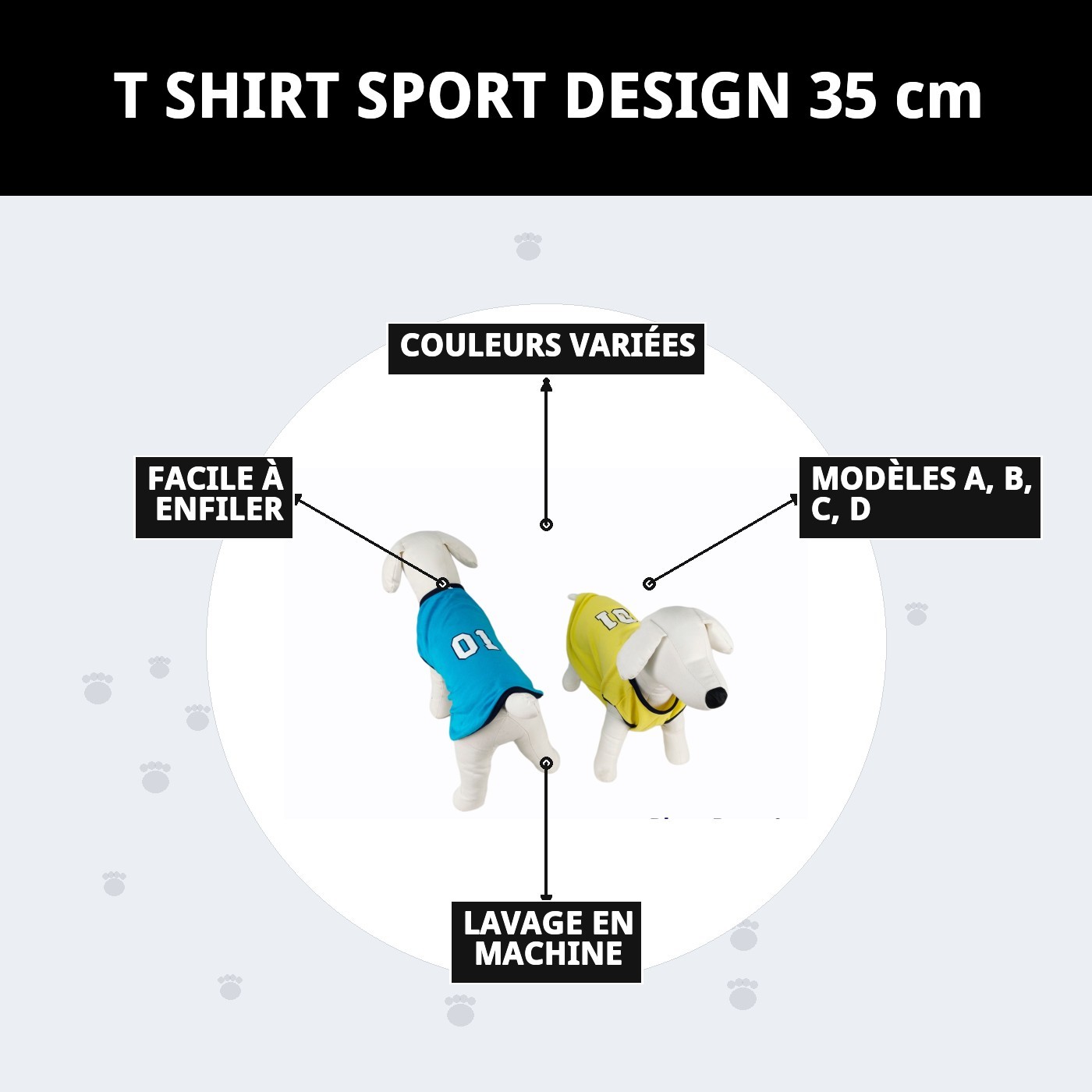 La t-shirt design sport 35 cm est le choix idéal pour votre chien, alliant style et confort. Disponible en plusieurs couleurs et quatre modèles (A, B, C et D), ce produit de Moly offre la meilleure qualité à un prix imbattable. Offrez à votre animal un look moderne et frais, parfait pour toutes les occasions.