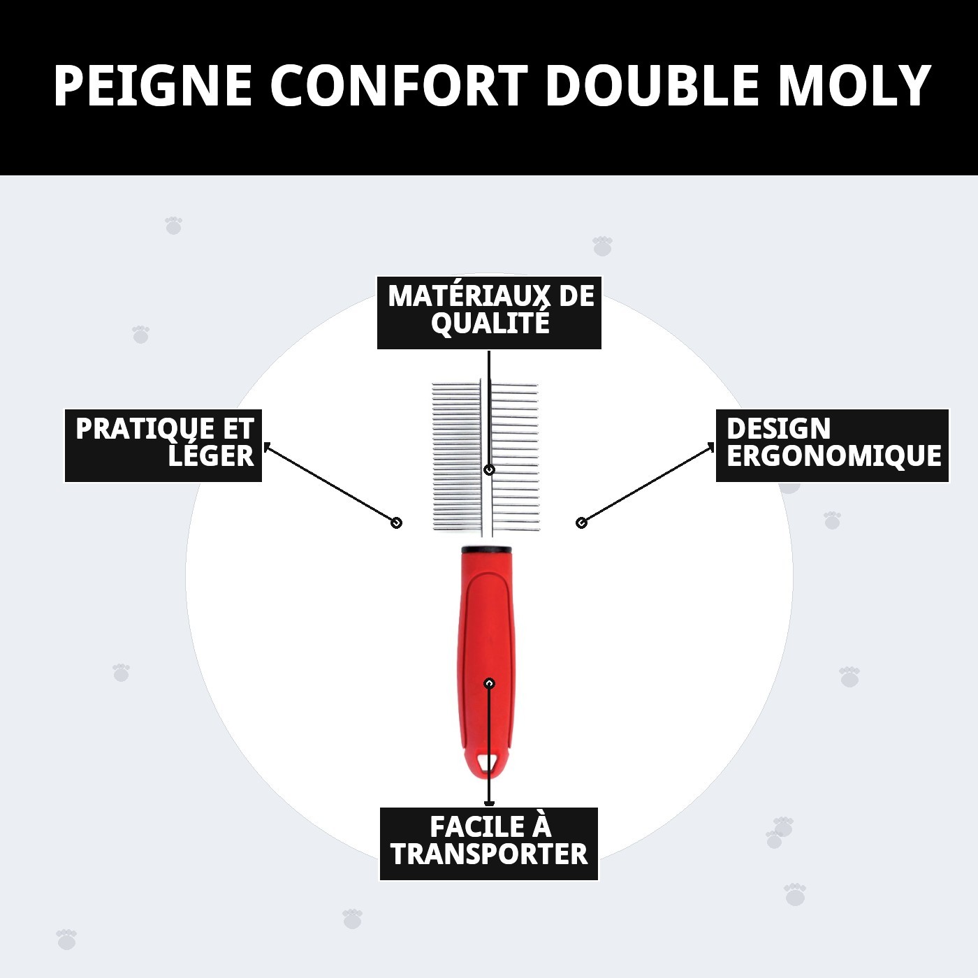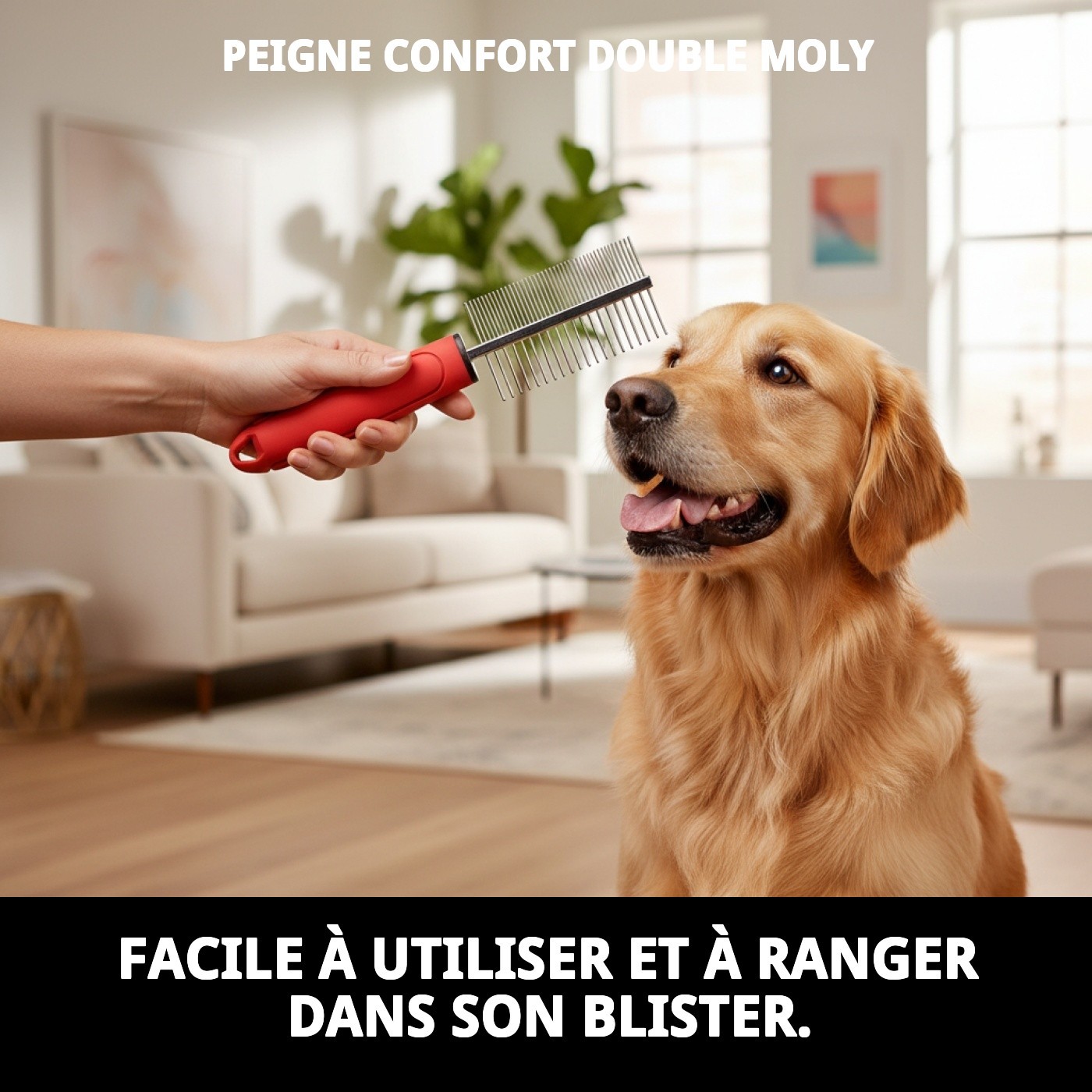 Êtes-vous de ceux qui aiment prendre soin de l'apparence de votre ami à fourrure ? Si c'est le cas, le peigne double Moly Confort deviendra votre meilleur allié lors des séances de toilettage. Cet accessoire, présenté dans un emballage pratique, est spécialement conçu pour faciliter l'entretien du pelage de vos animaux de compagnie. Dans cet article, je vais explorer tous les avantages offerts par ce fabuleux peigne et comment il peut transformer la routine de toilettage en un moment agréable tant pour vous que pour votre compagnon à quatre pattes.