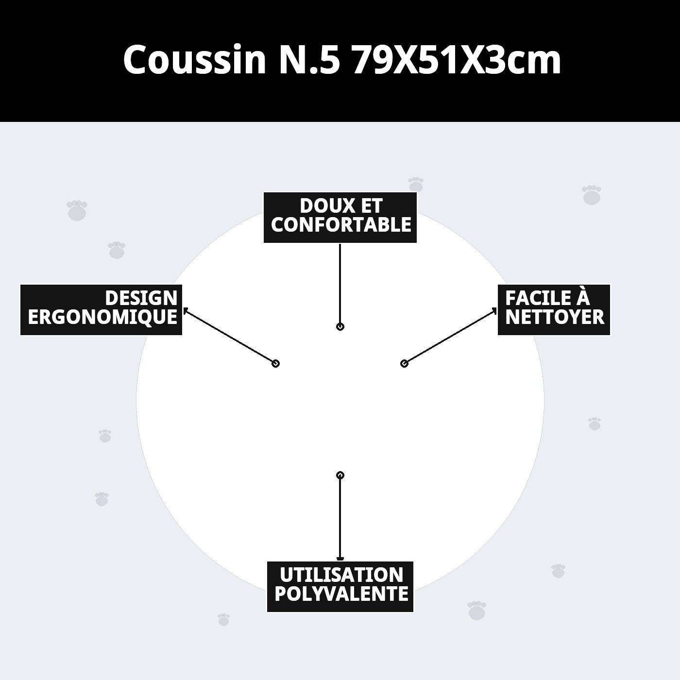 Choisir un bon endroit pour que votre animal se repose est crucial pour son bien-être. Le coussin N.5 79x51x3cm est plus qu'un simple accessoire ; c'est un investissement dans la santé et le bonheur de votre fidèle compagnon. N'oubliez pas qu'un animal qui dort bien est un animal heureux. De plus, la facilité d'entretien et la variété d'options disponibles font de ce coussin un choix pratique pour tout propriétaire d'animal.