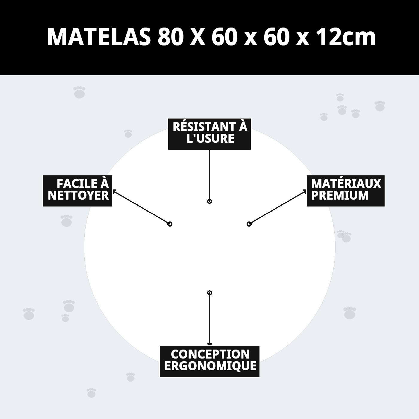 Le choix d'un matelas approprié peut faire une grande différence dans la qualité de vie de votre animal. Avec le matelas 80 x 60 x 12 cm, vous offrez à votre compagnon un espace doux et confortable où il peut se détendre après une journée pleine d'aventures. Cette taille est idéale pour les races moyennes et grandes, et son épaisseur de 12 cm garantit que votre animal est bien protégé du sol froid.